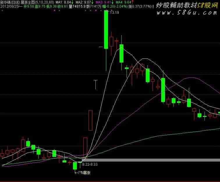 参数m1 2 1000 5 m2 2 1000 10m3 2 1000 20m4 2 1000 60MA1:MA(CLOSE,M1);MA2:MA(CLOSE,M2);MA3:MA(CLOSE,M3);MA4:MA(CLOSE,M4);DIF:=EMA(DCLOSE,12)-EMA(DCLOSE,26);DEA:=EMA(DIF,9);AAA:=(DIF-DEA)*2*60;起爆:=CROSS(AAA-REF(AAA,1),15),COLORRED,LINETHICK2;DRAWTEXT(起爆,L*0.99,'↖暴张'),COLORYELLOW,LINETHICK2