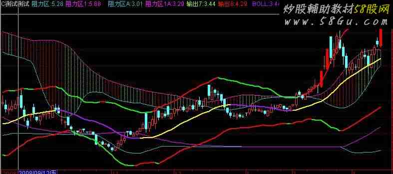 {N1:=9; N2:=26; N3:=52;} N1:=7; N2:=22; N3:=44; 布林:=HHV(HHV(L,14),60); 阻力区:EMA(EMA(布林,16)-2*STD(布林,16),3),COLORD2C90B{COLOR9999CC},LINETHICK1; 阻力区1:EMA(EMA(布林,14)+2*STD(布林,14),18),COLORMAGENTA,LINETHICK1{COLOR006699}; 阻力差:=ABS(阻力区-阻力区1); STICKLINE(阻力区>0,阻力区,阻力区1,0,-1),COLORLIGREEN{COLOR9999CC}; STICKLINE(阻力区>0 AND 阻力差>REF(阻力差,1),阻力区,阻力区1,0,-1),COLORRED; 布林A:=LLV(LLV(H,14),60); 阻力区A:EMA(EMA(布林A,16)-2*STD(布林A,16),3),COLORD2C90B{COLOR9999CC},LINETHICK1; 阻力区1A:EMA(EMA(布林A,14)+2*STD(布林A,14),18),COLORMAGENTA,LINETHICK1{COLOR006699}; 阻力差A:=ABS(阻力区A-阻力区1A); STICKLINE(阻力区A>0,阻力区A,阻力区1A,0,-1),COLORLIGREEN{COLOR9999CC}; STICKLINE(阻力区A>0 AND 阻力差A>REF(阻力差A,1),阻力区A,阻力区1A,0,-1),COLORRED; DRAWKLINE(HIGH,OPEN,LOW,CLOSE); N:=20; MID:=MA(C,N); VART1:=POW((C-MID),2); VART2:=MA(VART1,N); VART3:=SQRT(VART2); UPPER:=MID+2*VART3; LOWER:=MID-2*VART3; BOLL:REF(MID,1),LINETHICK2,COLORFF11AA; UB1:REF(UPPER,1),LINETHICK2,COLORGREEN; LB1:REF(LOWER,1),LINETHICK2,COLORRED; IF(BOLL>REF(BOLL,1),BOLL,DRAWNULL),LINETHICK2,COLORYELLOW; {IF(BOLL<=REF(BOLL,1),BOLL,DRAWNULL),LINETHICK2,COLORCYAN;} IF(UB1>REF(UB1,1),UB1,DRAWNULL),LINETHICK2,COLORRED; {IF(UB1<REF(UB1,1),UB1,DRAWNULL),LINETHICK2,COLORGREEN;} IF(LB1<REF(LB1,1),LB1,DRAWNULL),LINETHICK2,COLORGREEN; {IF(LB1>REF(LB1,1),LB1,DRAWNULL),LINETHICK2,COLORRED;}; C3:=REF(C,1); 涨停:=IF((C-C3)*100/C3>=(10-0.011*100/C3),1,0); STICKLINE(涨停,OPEN,CLOSE,2,0),COLORRED; 跌停:=IF((C3-C)*100/C3>=(10-0.01*100/C3),1,0); {STICKLINE(跌停,OPEN,CLOSE,2,0),COLORGREEN;}; |
