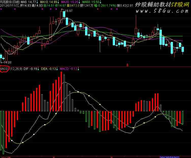 DIF:EMA(CLOSE,12)-EMA(CLOSE,26);DEA:EMA(DIF,9);MACD:(DIF-DEA)*2,COLORSTICK;STICKLINE(MACD>REF(MACD,1) AND MACD>0,0,MACD,1,0),COLORRED;STICKLINE(MACD>REF(MACD,1) AND MACD<0,0,MACD,1,0),COLORRED;STICKLINE(MACD<REF(MACD,1) AND MACD>0,0,MACD,1,1),COLORA8A8A8;STICKLINE(MACD<REF(MACD,1) AND MACD<0,0,MACD,1,1),COLORGREEN; |