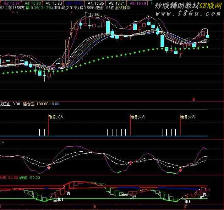 本指标由“神奇中线”(A1~A7)、“神奇短线”(A8~A9)和“安全线”(绿色)构成。从图形的简单变化即可确定多空双方主力谁占优势,大盘或个股是涨还是跌。本指标操作方便,准确率高。本指标既适用于中线波段炒作,也适用于短线炒作,是“看长线做短线”的有力工具。在具体操作中,“神奇中线”(A1~A7)适用于中线操作,“神奇短线”(A8~A9)适用于短线操作。 操作要领: 1、买点:当“神奇中线”由向下发散转变为向上收拢并即将或已经开始向上发散时为极佳的买点。当“神奇短线”A8与A9发生“金叉”时为短线“买点”。 2、卖点:当“神奇中线”由向上发散转变为向下收拢并即将或已经开始向下发散时为最后的卖点。当“神奇短线”A9与A8发生“死叉”时为短线“卖点”。 3、注意事项: A、当“神奇中线”、“神奇短线”发出买入信号时,如果K线在“安全线”(绿色)之下,可以试建仓,做反弹,但必须快进快出;一旦K线站在“安全线”(绿色)之上,并且有成交量的配合即可加码建仓,此时为较佳的买点。然后可看长做短,一路持股并等待短线指标或“神奇中线”或“神奇短线”发出卖出信号,然后回避短线调整或清仓离场。“神奇均线”的特色功能,除能实时提示相对安全的“买点”之外,非常重要的是它从A1~A7的形态特征上可以清晰的作出判断其基本的“趋势”是上升还是下降。在具体操作中我们可以““神奇中线”(A1~A7)不封闭,继续持股不持币”的原则确定是否继续持股待涨。Var1:=(2*CLOSE+HIGH+LOW+OPEN)/5;A1: (EMA(Var1,3)+EMA(Var1,6)+EMA(Var1,12)+EMA(Var1,24))/4;A2: EMA(A1,2);A3: EMA(A2,2);A4: EMA(A3,2);A5: EMA(A4,2);A6: EMA(A5,2);A7: EMA(A6,2);A8: EMA(Var1,2.78)*1.028;A9: MA(OPEN,3.2)*1.028;安全线: EMA(CLOSE,55), CIRCLEDOT; |