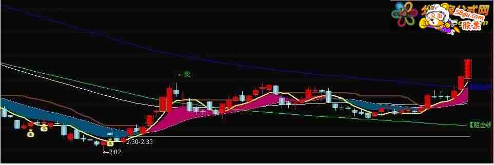 TTR:=MAX(MAX(HIGH-LOW,ABS(REF(M3,1)-HIGH)),ABS(REF(M3,1)-LOW)); VAR0:=EMA(EMA(EMA(CLOSE,2),2),2); ATR:=MA(TTR,13); VAR11:=REF(CLOSE,1)-REF(ATR,1); 牵牛线:HHV(VAR0,13)*0.98,LINETHICK2,COLOR004080; HHV(VAR0,3)*0.98,LINETHICK2,COLORYELLOW; 下降通道阻击线:EMA(牵牛线,99)*0.91,COLORBLUE ; 下降通道阻击线2:EMA(牵牛线,89)*0.72,COLORGREEN ; DRAWTEXT(ISLASTBAR,下降通道阻击线,'【阻击线1】'),COLORBLUE; DRAWTEXT(ISLASTBAR,下降通道阻击线2,'【阻击线2】'),COLORGREEN ; {涨停} STICKLINE(CLOSE>REF(CLOSE,1)*1.0985 AND CLOSE=HIGH,CLOSE,OPEN,4,-1),COLOR00FFFF; {跌停} STICKLINE(CLOSE<REF(CLOSE,1)*0.9015 AND CLOSE=LOW,CLOSE,OPEN,4,-1),COLORGREEN; STICKLINE(OPEN>CLOSE ,CLOSE ,OPEN,3,0 ),COLORFF2020; STICKLINE(OPEN>CLOSE ,CLOSE ,OPEN,3,0 ),COLORFF2020; STICKLINE(OPEN>CLOSE ,CLOSE ,OPEN,2,0 ),COLORFFFF00; STICKLINE(CLOSE>=OPEN,CLOSE,OPEN,2 ,0 ),COLOR2020FF; STICKLINE(CLOSE>=OPEN,CLOSE,OPEN,1 ,0 ),COLORB0B0FF; STICKLINE(CLOSE>=OPEN,CLOSE,OPEN,0.5 ,0 ),COLOR00FFFF; STICKLINE(CLOSE>=OPEN,OPEN,LOW,0,0 ),COLOR00FFFF; STICKLINE(CLOSE>=OPEN,CLOSE,HIGH,0,0 ),COLOR00FFFF; STICKLINE(OPEN>=CLOSE,CLOSE,LOW,0,0 ),COLORFFFF80; STICKLINE(OPEN>=CLOSE,OPEN,HIGH,0,0 ),COLORFFFF80; {2} STICKLINE(C>O,C,O,3,0),COLOR0000AA; STICKLINE(C<O,C,O,3,0),COLOR998855; STICKLINE(C>O,C,O,1,0),COLOR0000CC; STICKLINE(C>O,C,O,3,0),COLOR0000DD; STICKLINE(C>O,H,L,0,0),COLOR0000FF; STICKLINE(C<O,C,O,3,0),COLORBBAA77; STICKLINE(C<O,C,O,1,0),COLORDDCC99; STICKLINE(C<O,H,L,0,0),COLORFFEEBB;