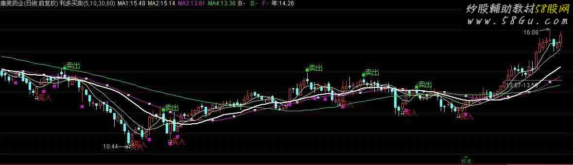 M1 1.00 300.00 5.00M2 1.00 300.00 10.00M3 1.00 300.00 30.00M4 1.00 300.00 60.00MA1:MA(CLOSE,M1);MA2:MA(CLOSE,M2);MA3:MA(CLOSE,M3);MA4:MA(CLOSE,M4);VAR3:=LLV(HIGH,240);VAR4:=100*(CLOSE-VAR3)/VAR3;VAR5:=(CLOSE-LLV(LOW,528))/(HHV(HIGH,528)-LLV(LOW,528))*100;VAR6:=(CLOSE-LLV(CLOSE,530))/(HHV(CLOSE,530)-LLV(CLOSE,530))*100;VAR7:=0;VAR8:=SMA(MAX(CLOSE-REF(CLOSE,1),0),34,1)/SMA(ABS(CLOSE-REF(CLOSE,1)),7,1)*100;VAR9:=SMA(MAX(CLOSE-REF(CLOSE,1),0),13,1)/SMA(ABS(CLOSE-REF(CLOSE,1)),13,1)*100;VAR10:=IF(TROUGHBARS(3,16,1)=0 AND HIGH>LOW+0.04,4,0);VAR11:=ZIG(3,6)>REF(ZIG(3,6),1) AND REF(ZIG(3,6),1)<=REF(ZIG(3,6),2) AND REF(ZIG(3,6),2)<=REF(ZIG(3,6),3);VAR12:=ZIG(3,6)<REF(ZIG(3,6),1) AND REF(ZIG(3,6),1)>=REF(ZIG(3,6),2) AND REF(ZIG(3,6),2)>=REF(ZIG(3,6),3);VAR13:=ZIG(3,22)>REF(ZIG(3,22),1) AND REF(ZIG(3,22),1)<=REF(ZIG(3,22),2) AND REF(ZIG(3,22),2)<=REF(ZIG(3,22),3);VAR14:=ZIG(3,22)<REF(ZIG(3,22),1) AND REF(ZIG(3,22),1)>=REF(ZIG(3,22),2) AND REF(ZIG(3,22),2)>=REF(ZIG(3,22),3);VAR15:=ZIG(3,51)>REF(ZIG(3,51),1) AND REF(ZIG(3,51),1)<=REF(ZIG(3,51),2) AND REF(ZIG(3,51),2)<=REF(ZIG(3,51),3);VAR16:=ZIG(3,51)<REF(ZIG(3,51),1) AND REF(ZIG(3,51),1)>=REF(ZIG(3,51),2) AND REF(ZIG(3,51),2)>=REF(ZIG(3,51),3);VAR17:=ZIG(3,72)>REF(ZIG(3,72),1) AND REF(ZIG(3,72),1)<=REF(ZIG(3,72),2) AND REF(ZIG(3,72),2)<=REF(ZIG(3,72),3);VAR18:=ZIG(3,72)<REF(ZIG(3,72),1) AND REF(ZIG(3,72),1)>=REF(ZIG(3,72),2) AND REF(ZIG(3,72),2)>=REF(ZIG(3,72),3);VAR19:=EMA(CLOSE,2)-EMA(CLOSE,150);买1:=VAR10;买2:=(VAR11+VAR13+VAR15+VAR17);卖1:=(VAR12+VAR14+VAR16+VAR18);B:IF(买1>0 OR 买2>0,LOW*0.99,DRAWNULL),CROSSDOT,LINETHICK3,COLORYELLOW;DRAWTEXT(买1>0 OR 买2>0,LOW*0.99,'买入'),COLORRED;S:IF(卖1>0,HIGH*1.01,DRAWNULL),CROSSDOT,LINETHICK3,COLORGREEN;DRAWTEXT(卖1>0,HIGH*1.02,'卖出'),COLORGREEN;{股灵吧决策}VAR100:=(100 - ((90 * (HHV(HIGH,20) - CLOSE)) / (HHV(HIGH,20) - LLV(LOW,20))));VAR200:=(100 - ((90 * (HHV(HIGH,20) - CLOSE)) / (HHV(HIGH,20) - LLV(LOW,20))));VAR300:=(100 - MA(((100 * (HHV(HIGH,5) - CLOSE)) / (HHV(HIGH,5) - LLV(LOW,5))),34));F:IF(CROSS(VAR200,MA(VAR300,5)),LOW * 0.98,DRAWNULL),CROSSDOT,LINETHICK3,COLOREE00EE;年:MA(CLOSE,22),LINETHICK2,COLORWHITE; |