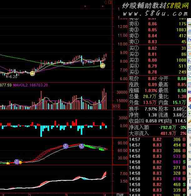 大盘不好时学点技术 上攻配套公式;MA5:MA(CLOSE,5);MA10:MA(CLOSE,10);MA20:MA(CLOSE,20);MA60:MA(CLOSE,60);CV:=CLOSE;BBIBOLL:=(MA(CV,3)+MA(CV,6)+MA(CV,12)+MA(CV,24))/4;UPR:=BBIBOLL+6*STD(BBIBOLL,11);DWN:=BBIBOLL-6*STD(BBIBOLL,11);QJJ:=VOL/((HIGH-LOW)*2-ABS(CLOSE-OPEN));XVL:=(IF(CLOSE>OPEN,QJJ*(HIGH-LOW),IF(CLOSE<OPEN,QJJ*(HIGH-OPEN+CLOSE-LOW),VOL/2))+IF(CLOSE>OPEN,0-QJJ*(HIGH-CLOSE+OPEN-LOW),IF(CLOSE<OPEN,0-QJJ*(HIGH-LOW),0-VOL/2)));HSL:=(XVL/3)/1.15;攻击:=((HSL*0.55+(REF(HSL,1)*0.33))+(REF(HSL,2)*0.22));LLJX:=EMA(攻击,3);B1:=IF(SUM(LLJX,1)>REF(MA(SUM(LLJX,1),1),1),SUM(LLJX,1),DRAWNULL);B2:=IF(SUM(LLJX,2)>REF(MA(SUM(LLJX,2),1),1),SUM(LLJX,2),DRAWNULL);B3:=IF(SUM(LLJX,3)>REF(MA(SUM(LLJX,3),1),1),SUM(LLJX,3),DRAWNULL);B4:=IF(SUM(LLJX,4)>REF(MA(SUM(LLJX,4),1),1),SUM(LLJX,4),DRAWNULL);B5:=IF(SUM(LLJX,5)>REF(MA(SUM(LLJX,5),1),1),SUM(LLJX,5),DRAWNULL);B6:=IF(SUM(LLJX,6)>REF(MA(SUM(LLJX,6),1),1),SUM(LLJX,6),DRAWNULL);B7:=IF(SUM(LLJX,7)>REF(MA(SUM(LLJX,7),1),1),SUM(LLJX,7),DRAWNULL);B8:=IF(SUM(LLJX,8)>REF(MA(SUM(LLJX,8),1),1),SUM(LLJX,8),DRAWNULL);B9:=IF(SUM(LLJX,9)>REF(MA(SUM(LLJX,9),1),1),SUM(LLJX,9),DRAWNULL);B10:=IF(SUM(LLJX,10)>REF(MA(SUM(LLJX,10),1),1),SUM(LLJX,10),DRAWNULL);XG:=B1 AND B2 AND B3 AND B4 AND B5 AND B6 AND B7 AND B8 AND B9 AND B10 AND (CLOSE-OPEN)>=(UPR-BBIBOLL) AND V/REF(V,1)>=1.9;DRAWICON(XG,OPEN-0.2,5);上攻选股公式;CV:=CLOSE;BBIBOLL:=(MA(CV,3)+MA(CV,6)+MA(CV,12)+MA(CV,24))/4;UPR:=BBIBOLL+6*STD(BBIBOLL,11);DWN:=BBIBOLL-6*STD(BBIBOLL,11);QJJ:=VOL/((HIGH-LOW)*2-ABS(CLOSE-OPEN));XVL:=(IF(CLOSE>OPEN,QJJ*(HIGH-LOW),IF(CLOSE<OPEN,QJJ*(HIGH-OPEN+CLOSE-LOW),VOL/2))+IF(CLOSE>OPEN,0-QJJ*(HIGH-CLOSE+OPEN-LOW),IF(CLOSE<OPEN,0-QJJ*(HIGH-LOW),0-VOL/2)));HSL:=(XVL/3)/1.15;攻击:=((HSL*0.55+(REF(HSL,1)*0.33))+(REF(HSL,2)*0.22));LLJX:=EMA(攻击,3);B1:=IF(SUM(LLJX,1)>REF(MA(SUM(LLJX,1),1),1),SUM(LLJX,1),DRAWNULL);B2:=IF(SUM(LLJX,2)>REF(MA(SUM(LLJX,2),1),1),SUM(LLJX,2),DRAWNULL);B3:=IF(SUM(LLJX,3)>REF(MA(SUM(LLJX,3),1),1),SUM(LLJX,3),DRAWNULL);B4:=IF(SUM(LLJX,4)>REF(MA(SUM(LLJX,4),1),1),SUM(LLJX,4),DRAWNULL);B5:=IF(SUM(LLJX,5)>REF(MA(SUM(LLJX,5),1),1),SUM(LLJX,5),DRAWNULL);B6:=IF(SUM(LLJX,6)>REF(MA(SUM(LLJX,6),1),1),SUM(LLJX,6),DRAWNULL);B7:=IF(SUM(LLJX,7)>REF(MA(SUM(LLJX,7),1),1),SUM(LLJX,7),DRAWNULL);B8:=IF(SUM(LLJX,8)>REF(MA(SUM(LLJX,8),1),1),SUM(LLJX,8),DRAWNULL);B9:=IF(SUM(LLJX,9)>REF(MA(SUM(LLJX,9),1),1),SUM(LLJX,9),DRAWNULL);B10:=IF(SUM(LLJX,10)>REF(MA(SUM(LLJX,10),1),1),SUM(LLJX,10),DRAWNULL);XG:=B1 AND B2 AND B3 AND B4 AND B5 AND B6 AND B7 AND B8 AND B9 AND B10;XH:=(CLOSE-OPEN)>=(UPR-BBIBOLL) AND V/REF(V,1)>=1.9;XG AND XH; |