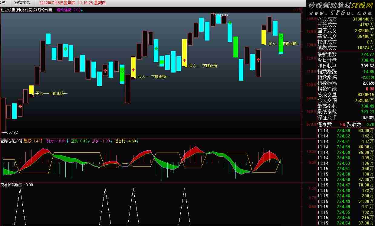 简单说明:感谢股友“英雄起鸟名”解答如下: 要求:王照华老师交易护驾过滤要求: 三条件满足买进 A).近台比值 -- 转为正且向上; B).多线大于等于空线; C).(引力线值为正向上) -- 引力柱初见红色; Z_1:=C-REF(C,1); 空:=EMA(EMA(Z_1,6),6)/EMA(EMA(ABS(Z_1),6),6)*20; 多:=(空*2-FORCAST(空,9)); RSV:=(C-LLV(L,3))/(HHV(H,3)-LLV(L,3))*100; K:=SMA(RSV,2,1); D:=SMA(K,2,1); J:=3*K-2*D; 引力:=SMA(J,2,1)-SMA(J,3,1); 空头:=空; 多头:=多; JT_B1:=(O+L+H+C*3)/6; WMR:=(5*JT_B1+4*REF(JT_B1,1)+3*REF(JT_B1,2)+2*REF(JT_B1,3)+1*REF(JT_B1,4))/(5+4+3+2+1); JT_B2:=REVERSE(JT_B1)+2*WMR; JT_B3:=3*JT_B2-2*SMA(JT_B2,2,1); JTB4:=IF(BARSLAST(C>JT_B3),JT_B3,DRAWNULL); JT_B4:=IF(BARSLAST(C>JT_B3),JT_B3,REF(JTB4,1)); JTB5:=IF(BARSLAST(C<=JT_B3),JT_B3,DRAWNULL); JT_B5:=IF(BARSLAST(C<=JT_B3),JT_B3,REF(JTB5,1)); JT_B6:=IF(C<=JT_B3,JT_B4,JT_B5); 近台比:=(C-JT_B6)/JT_B6*100; 近台比>0 AND EVERY(近台比>REF(近台比,1),2) AND 多头>=空头 AND CROSS(引力,0);