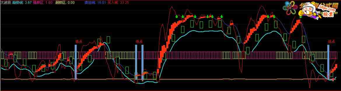 N:=2; M:=3;趋势线:SMA(EMA(((C+L)/2-LLV(L,21))/(HHV((H+C)/2,21)-LLV(L,21))*100,3),7,1)-(13),LINETHICK2,COLORF0F000;判断:=(SMA(((C+L)/2-LLV(L,21))/(HHV((H+C)/2,21)-LLV(L,21))*100,2,1)-8);强势区:判断>趋势线,COLOR9800FF;STICKLINE(强势区,30,40,4,2),COLOR9800FF;弱势区:判断<趋势线,COLORYELLOW;STICKLINE(弱势区,30,40,4,2),COLORYELLOW;STICKLINE(FILTER(CROSS(判断,趋势线)=1 OR 判断>REF(判断,1),10) AND 判断<25 ,趋势线,趋势线+10,9,1),COLORRED;STICKLINE(FILTER(判断,5),趋势线+5,趋势线+15,9,1),COLOR00FF00;DRAWICON(FILTER(趋势线>=REF(趋势线,1)AND 趋势线<0,15),0,1);VAR2:=1;VAR3:=REF(HIGH,1)*1.1;VAR4:=HIGH*1.1;VAR5:=(VAR4*VOL+VAR3*(CAPITAL-VOL))/CAPITAL;VAR6:=REF(LOW,1)*0.9;VAR7:=LOW*0.9;VAR8:=(VAR7*VOL+VAR6*(CAPITAL-VOL))/CAPITAL;VAR9:=EMA(VAR8,30);VARA:=EMA(VAR5,30);VARB:=VARA-2;VARC:=IF(CLOSE<=VAR9,VARB,VARA);VARD:=MA(CLOSE,80)-MA(CLOSE,10)/17;出手: STICKLINE(VARC-VARB=0 AND VAR2 AND CROSS((EMA(EMA(EMA(CLOSE,N),N),N)-REF(EMA(EMA(EMA(CLOSE,N),N),N),1))/REF(EMA(EMA(EMA(CLOSE,N),N),N),1)*100,MA((EMA(EMA(EMA(CLOSE,N),N),N)-REF(EMA(EMA(EMA(CLOSE,N),N),N),1))/REF(EMA(EMA(EMA(CLOSE,N),N),N),1)*100,M)),50,0,5,0),COLORCC9966;赢: DRAWTEXT(FILTER(VARC-VARB=0 AND CROSS((EMA(EMA(EMA(CLOSE,N),N),N)-REF(EMA(EMA(EMA(CLOSE,N),N),N),1))/REF(EMA(EMA(EMA(CLOSE,N),N),N),1)*100,MA((EMA(EMA(EMA(CLOSE,N),N),N)-REF(EMA(EMA(EMA(CLOSE,N),N),N),1)) /REF(EMA(EMA(EMA(CLOSE,N),N),N),1)*100,M)),4),55,'低点'),COLORRED;VARE:=(CLOSE-LLV(LOW,34))/(HHV(HIGH,34)-LLV(LOW,34))*100;卖出线: SMA(SMA(VARE,3,1),3,1),COLORFF6633;买入线: 3*SMA(VARE,3,1)-2*卖出线,COLORRED;DRAWICON(CROSS(90,买入线),90,2);黄金点: STICKLINE(SMA(VARE,3,1)>卖出线,SMA(VARE,3,1),卖出线,4,0),COLOR1133FF ; |