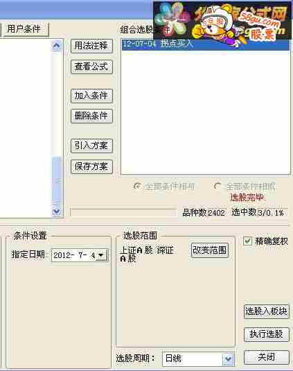 超短选股思路: 1.五日线上拐。 2.均线多头排列。 3.主力资金介入。 4.转天高开卖出 5.成功率高。MAV1:=MA(V,5); MAV2:=MA(V,35); MAV3:=MA(V,135); 炮:=REF(C,1)>REF(O,1) AND REF(C,3)>REF(O,3) AND REF(C,2)<REF(O,2) ; MAV1拐:=MAV1>REF(MAV1,1) AND REF(MAV1,2)>REF(MAV1,1) AND REF(MAV1,1)< REF(MAV3,1); 拐期:=BARSLAST(CROSS(MAV3,MAV1))>2 AND BARSLAST(CROSS(MAV3,MAV1))<8; 多:=EMA(WINNER(C)*70,3); 空:=EMA((WINNER(C*1.1)-WINNER(C*0.9))*70,3); V拐点:MAV1拐 AND 拐期 AND 炮 AND V>REF(V,1) AND C>O AND (多,空); |