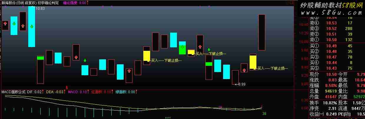 说明:献给初学缠论的朋友。 1、K线只有最高价和最低价还有就是收阳或者收阴,利于初学者判定分型。 2、缠论强度:新股木数字,一年以上一才有。 3、粉红色为涨停,蓝色为跌停标记。 4、其它木多说,学缠者自然懂。高手飘过、初学者滴天堂分笔。 MACD面积公式DIF:EMA(CLOSE,12)-EMA(CLOSE,26);DEA:EMA(DIF,9);MACD:(DIF-DEA)*2,COLORSTICK;红面积:SUM(MACD,BARSLAST(MACD<0))*(MACD>0),COLOR0000FF,NODRAW;绿面积:SUM(MACD,BARSLAST(MACD>0))*(MACD<0),COLORFFFF00,NODRAW;AA:=ROUND(REF(绿面积,1)*100);BB:=ROUND(REF(红面积,1)*100);DRAWNUMBER(CROSS(0,MACD),HHV(REF(MACD,1),5)+0.03,ABS(BB)),COLORMAGENTA;DRAWNUMBER(CROSS(MACD,0),LLV(REF(MACD,1),5)-0.03,ABS(AA)),COLORGREEN; |