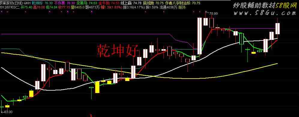 乾坤好:HHV(EXPMEMA(OPEN,3),15),COLORLIBLUE,;不作票:HHV(EXPMEMA(OPEN,3),50),COLORMAGENTA;没黑码:EXPMEMA(OPEN,3),COLORGREEN,LINETHICK2;金牛到:IF(没黑码>REF(MA(没黑码,3),1),没黑码,DRAWNULL),COLORRED,LINETHICK2;线上赢:MA(没黑码,13),COLORWHITE,LINETHICK2;底线跑:MA(线上赢,34),COLORYELLOW,LINETHICK2;作者八字财运好:MA(线上赢,34),COLORYELLOW,LINETHICK2;乾坤:=MA(CLOSE,15),COLOR00FF00;STICKLINE(C>=乾坤 AND C>=O,C,O,2.4,0),COLORWHITE;STICKLINE(C>=乾坤 AND C>=O,H,L,0,0),COLORRED;STICKLINE(C>=乾坤 AND C<O,C,O,2.4,1),COLORRED;STICKLINE(C>=乾坤 AND C<O,O,H,0,0),COLORRED;STICKLINE(C>=乾坤 AND C<O,C,L,0,0),COLORRED;STICKLINE(C<乾坤 AND C>O,C,O,2.4,0),COLORYELLOW;STICKLINE(C<乾坤 AND C<=O,C,O,2.4,1),COLORGREEN;STICKLINE(C<乾坤 AND C<=O,H,L,0,1),COLORGREEN;STICKLINE(C<乾坤 AND C>O,C,H,0,1),COLORGREEN; |