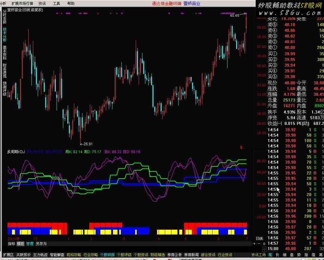 周K:KDJ.K#WEEK,LINETHICK2,COLORGREEN; 周D:KDJ.D#WEEK,LINETHICK2,COLORGREEN; Z1:=周K>周D; STICKLINE(Z1,-50,-38,2,0),LINETHICK2,COLORBLUE;