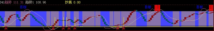 { 趋势副图 } RSV2:=(CLOSE-LLV(LOW,9))/(HHV(HIGH,9)-LLV(LOW,9))*100; K2:=SMA(RSV2,3,1); D2:=SMA(K2,3,1); J2:=3*K2-2*D2; BB1:=EMA(J2,5); BB2:=REF(BB1,1); STICKLINE((BB1 <= BB2),100,0,8,0),ColorFF4646; STICKLINE((BB1 >=BB2 ),100,0,8 ,0 ),coloraa7488; STICKLINE(BB1>BB2,BB1,BB2,7,0),COLOR000045; STICKLINE(BB1>BB2,BB1,BB2,5,0),COLOR000085; STICKLINE(BB1>BB2,BB1,BB2,3,0),COLOR0000C5; STICKLINE(BB1>BB2,BB1,BB2,1,0),COLOR0000E5; STICKLINE(BB1<=BB2,BB1,BB2,7,0),COLOR353500; STICKLINE(BB1<=BB2,BB1,BB2,5,0),COLOR555500; STICKLINE(BB1<=BB2,BB1,BB2,3,0),COLOR757500; STICKLINE(BB1<=BB2,BB1,BB2,1,0),COLOR858500; 趋势: 5*SMA((CLOSE-LLV(LOW,27))/(HHV(HIGH,27)-LLV(LOW,27))*100,5,1)-3*SMA(SMA((CLOSE-LLV(LOW,27))/(HHV(HIGH,27)-LLV(LOW,27))*100,5,1),3,1)-SMA(SMA(SMA((CLOSE-LLV(LOW,27))/(HHV(HIGH,27)-LLV(LOW,27))*100,5,1),3,1),2,1),LINETHICK0,COLOR7F52AF; 趋势1: EMA(MA(趋势,5),3),LINETHICK0,COLORA6B8C1; 底部: 5,,COLOR000000; 抄底: IF(CROSS(趋势,底部),60,0),LINETHICK0,STICK,COLOR00FFFF; VarA:=LLV(LOW,36); VarB:=HHV(HIGH,30); VarC:=EMA((CLOSE-VarA)/(VarB-VarA)*4,4)*25; 底背: STICKLINE(VarC<10,0,2,5,0), coloryellow; 顶背: STICKLINE(VarC>90,100,142,5,0) , colorred; VarD:=87.5; VarE:=(VarC-LLV(VarC,4))/(HHV(VarC,4)-LLV(VarC,4))*4*25; 买1: DRAWTEXT(IF(CROSS(VarE,87.5) AND 趋势<40,87,0),0.001,'买') , colorred; 目标位: DRAWTEXT(IF(CROSS(趋势,VarD) AND VarE=100,50,0),136,'目标'),colorblue; |