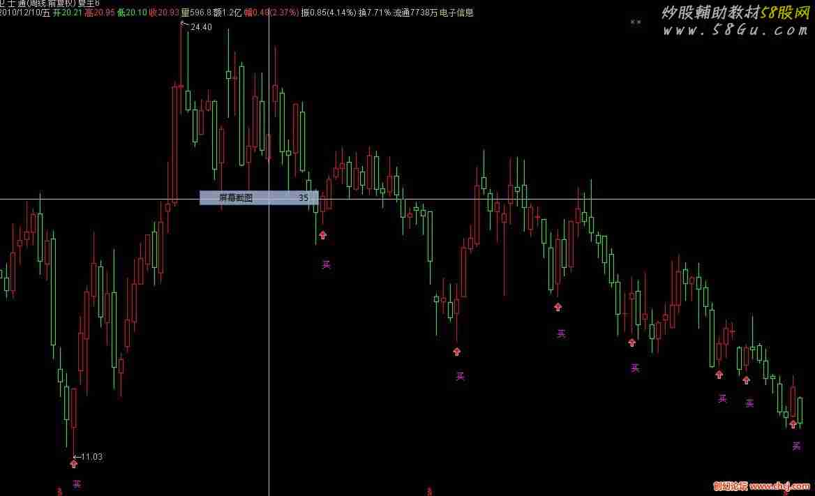 STICKLINE(O>C,H,O,0,1),COLORGREEN; STICKLINE(O>C,O,C,2,1),COLORGREEN; STICKLINE(O>C,L,C,0,1),COLORGREEN; STICKLINE(O<C,H,C,0,1),COLORRED; STICKLINE(O<C,O,C,2,1),COLORRED; STICKLINE(O<C,L,O,0,1),COLORRED; STICKLINE(CLOSE=O,LOW,H,0,1),COLORRED; STICKLINE(CLOSE=O,O,C,2,1),COLORRED; MA2:MA(CLOSE,M2),COLORCYAN; MA3:=MA(CLOSE,M3),COLORA6A6A6; MA4:=MA(CLOSE,M4),COLORGREEN; MA1:MA(CLOSE,M1),COLORYELLOW; LC:=REF(CLOSE,1); RSI5:=((SMA(MAX((CLOSE - LC),0),5,1) / SMA(ABS((CLOSE - LC)),5,1)) * 100); TR1:=SUM(MAX(MAX((HIGH - LOW),ABS((HIGH - REF(CLOSE,1)))),ABS((LOW - REF(CLOSE,1)))),10); HD:=(HIGH - REF(HIGH,1)); LD:=(REF(LOW,1) - LOW); DMP:=SUM(IF(((HD > 0) AND (HD > LD)),HD,0),10); DMM:=SUM(IF(((LD > 0) AND (LD > HD)),LD,0),10); PDI:=((DMP * 100) / TR1); MDI:=((DMM * 100) / TR1); ADX:=MA(((ABS((MDI - PDI)) / (MDI + PDI)) * 100),5); AV:=(RSI5 + ADX); DXR:=(((ADX + REF(ADX,5)) / 2) + RSI5); WR10:=((100 * (HHV(HIGH,10) - CLOSE)) / (HHV(HIGH,10) - LLV(LOW,10))); NEWVOL:=(RSI5 - WR10); 买:=(AV + NEWVOL); DRAWTEXT(CROSS(买,0),L*0.965,'买'),COLORFF00FF; DRAWICON(CROSS(买,0),L*0.98,1);  |