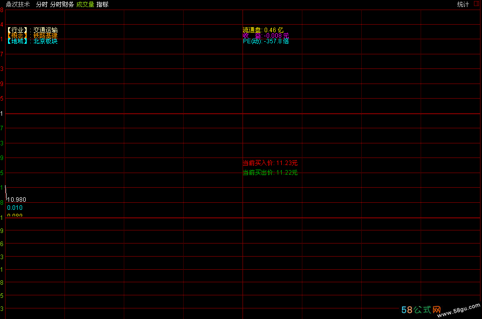 DRAWTEXT_FIX(1,0,0,0,'【行业】:'),COLORAAEEEE; DRAWTEXT_FIX(1,0.06,0,0,HYBLOCK),COLORAAEEEE;{行业} DRAWTEXT_FIX(1,0,0.03,0,'【概念】:'),COLOR00A5FF; DRAWTEXT_FIX(1,0.06,0.03,0,GNBLOCK),COLOR00A5FF;{概念} DRAWTEXT_FIX(1,0,0.06,0,'【地域】:'),COLORF9FF00; DRAWTEXT_FIX(1,0.06,0.06,0,DYBLOCK),COLORF9FF00;{地域} 流通盘:=STRCAT(STRCAT('流通盘: ',CON2STR(CAPITAL/1000000,2)),' 亿'),COLOR00FFFF; 收益:=STRCAT(STRCAT('收 益: ',CON2STR(FINANCE(33)/(5-FINANCE(37)),3)),' 元'),COLOR00FFFF; PE:=STRCAT(STRCAT('PE(动): ',CON2STR(C/FINANCE(33),1)),' 倍'),COLOR00FFFF; DRAWTEXT_FIX(ISLASTBAR,0.5,0,0,流通盘),COLOR00FFFF; DRAWTEXT_FIX(ISLASTBAR,0.5,0.03,0,收益),COLORFF00FF; DRAWTEXT_FIX(ISLASTBAR,0.5,0.06,0,PE),COLORFFFF00; 买出价:=STRCAT(STRCAT('当前买出价: ',CON2STR(DYNAINFO(20),2)),'元'),COLOR0000FF; 买入价:=STRCAT(STRCAT('当前买入价: ',CON2STR(DYNAINFO(21),2)),'元'),COLORFFFF00; DRAWTEXT_FIX(ISLASTBAR,0.5,0.75,0,买出价),COLORGREEN; DRAWTEXT_FIX(ISLASTBAR,0.5,0.7,0,买入价),COLORRED; DRAWNUMBER(ISLASTBAR=1,CLOSE,CLOSE),COLORFFFFFF; DRAWNUMBER(ISLASTBAR=1,CLOSE*0.996,DYNAINFO(14)*100),COLOR00FFFF; DRAWNUMBER(ISLASTBAR=1,CLOSE*0.998,DYNAINFO(12)),COLORFFFF00;