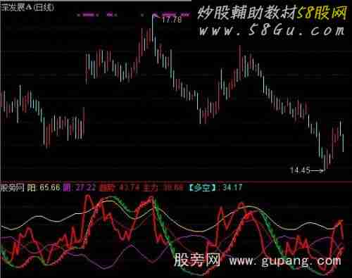 RSV1:=((HHV(H2,9) - CC)/(HHV(H2,9) - LLV(H1,9)))*(100); Y2A:=(((SMA(RSV1,3,1))*(VAR3))/(2))*(1.1); Y2:=SMA(Y2A,3,1); 阴:Y2,LINETHICK1,COLORFF00FF; LC:=REF(CC,1); RSI1:=((SMA(MAX(CC - LC,0),13,1))/(SMA(ABS(CC - LC),13,1)))*(100); RSI2:=((SMA(MAX(CC - LC,0),6,1))/(SMA(ABS(CC - LC),6,1)))*(100); RSI3:=IF((RSI2 > 50),(RSI2)*(1.05),RSI2); RSV3:=((CC - LLV(H1,54))/(HHV(H2,54) - LLV(H1,54)))*(100); RSI4:=IF((RSI3 > 100),100,RSI3); K:=SMA(RSV,3,1); D:=SMA(K,3,1); RRR:=(EMA(SLOPE(RSI4,3),20))*(VAR3); 趋势:RSI4,LINETHICK2,COLORRED; ZL:=EMA(RSI2,13); 主力:ZL,LINETHICK1,COLORRED; D1:=EMA((3)*(SMA(((CLOSE - LLV(LOW,27))/(HHV(HIGH,27) - LLV(LOW,27)))*(100),5,1)) - (2)*(SMA(SMA(((CLOSE - LLV(LOW,27))/(HHV(HIGH,27) - LLV(LOW,27)))*(100),5,1),3,1)),5); D2:=REF(D1,1); 【多空】:D1,COLORFFFF00; STICKLINE((D1 >= REF(D1,1)),D1,D2,1,0),COLORRED; STICKLINE((D1 < REF(D1,1)),D1,D2,1,0),COLOR008000; |