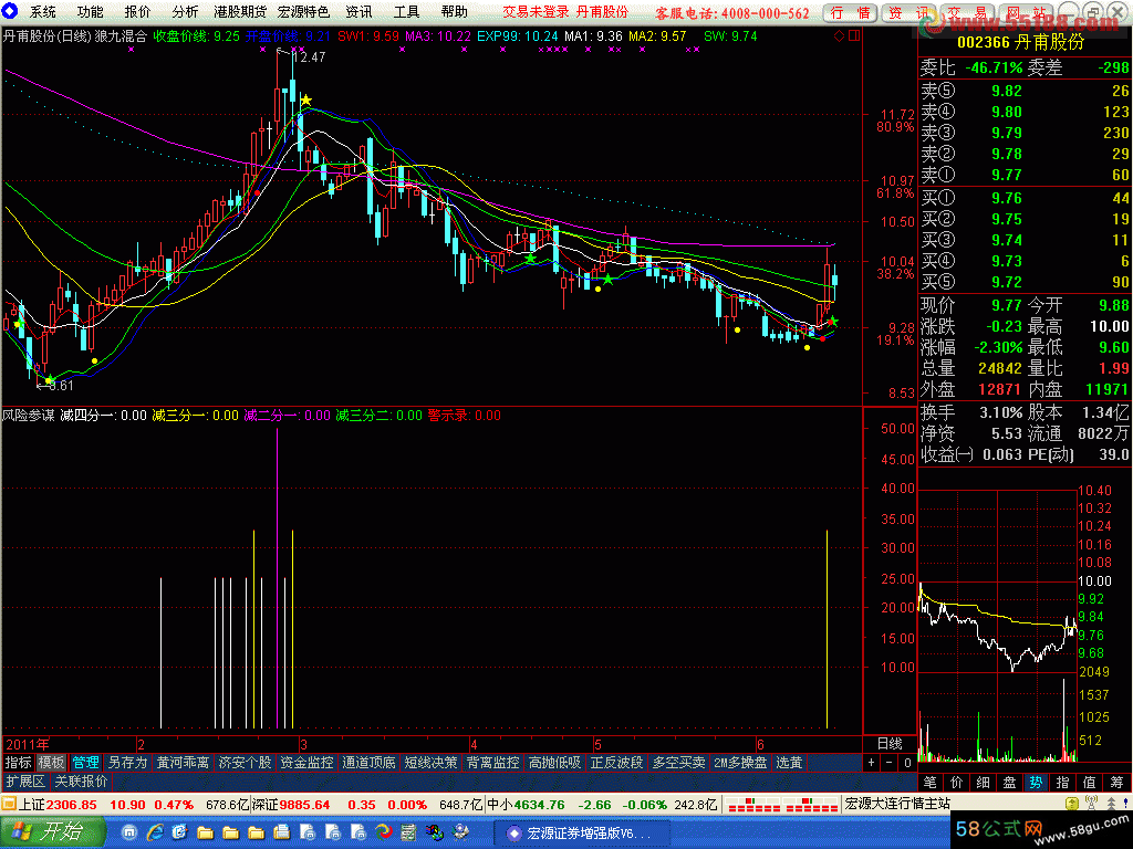 缺点:只是风险提示,没有盈利加仓信号。 说明:不是自编,但多年自用,我当军纪使用。