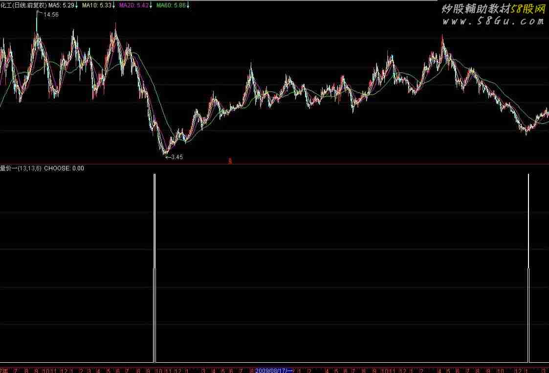 量价找底是判断波段底部的方法之一,而量价找底的大思路下又有许多方法,且仁者见仁智者见智。本指标是我的一个思考和探索吧,沧海一粟而已。当然,主力操盘办法与路径林林总总,所以并非每个牛股本指标都能抓住,但一经本指标信号提示,关注它,还是会有收益的。为便于大家看清楚在股价长期波动中本指标出现的区域和频率,我把显示比例缩得较小,同时也没有把所选出历史表现特别牛的牛股作为样本。 本指标提示方法:脉冲箭头信号。 {福将牵牛量价一} {参数:r1 1 100 13;r2 1 100 13;r3 1 50 7}V1:=(H+O+L+2*C)/5; V2:=REF(V1,1); V3:=MAX(V1-V2,0); V4:=ABS(V1-V2); V5:=SMA(V3,R1,1); V6:=SMA(V4,R1,1); V8:=COUNT(V5/V6<0.19,R3); V9:=COUNT(LLV(V1,R2)=V1,R2); MA5:=MA(C,5); MA10:=MA(C,10);PREP1:=IF(V8>=1 AND V9>=1 AND VOL>REF(VOL,1),1,0); PREP2:=MA5>=MA10; CHOOSE:COUNT(PREP1,5)>=3 AND PREP2; |