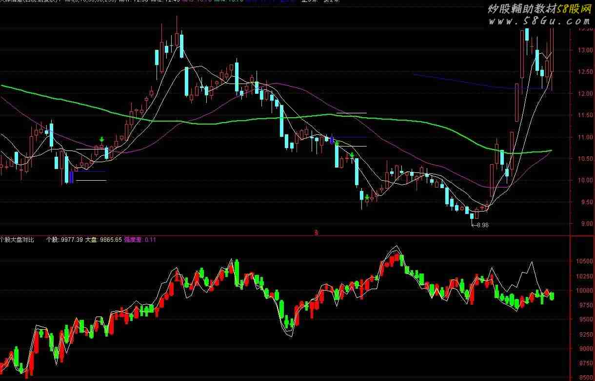 个与的强弱度与大盘的对比公式,找到比大盘强势的个股然后找买点过场。。 最高指数:=INDEXH,LINETHICK0; 最低指数:=INDEXL,LINETHICK0; 开盘指数:=INDEXO,LINETHICK0; 收盘指数:=INDEXC,LINETHICK0; STICKLINE(INDEXA>0 AND INDEXO<INDEXC,INDEXO,INDEXC,3,0),COLORRED; STICKLINE(INDEXA>0 AND INDEXO>INDEXC,INDEXC,INDEXO,3,0),COLORGREEN; STICKLINE(INDEXA>0 AND INDEXO<INDEXC,INDEXH,INDEXL,1,0),COLORRED; STICKLINE(INDEXA>0 AND INDEXO>INDEXC,INDEXH,INDEXL,1,0),COLORGREEN; AAA:=C/REF(C,1); BBB:=(最高指数+最低指数+开盘指数+收盘指数)/4/REF((最高指数+最低指数+开盘指数+收盘指数)/4,1); 个股:MA(AAA,5)*收盘指数; 大盘:MA(BBB,5)*收盘指数; 强度差:AAA-BBB,NODRAW; |