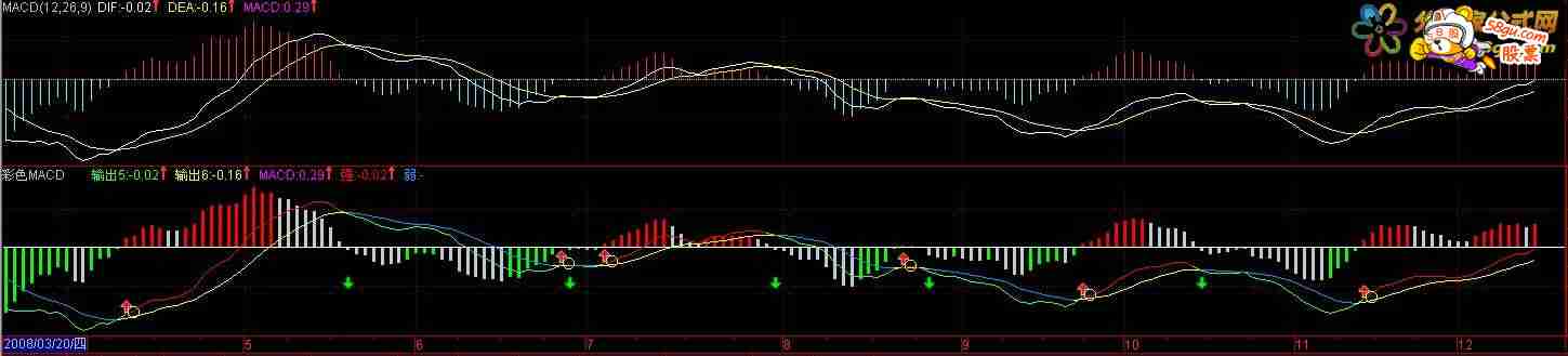 {彩色MACD} DIFIF1:=EMA(CLOSE,12) - EMA(CLOSE,26); DEAEA1:=EMA(DIFIF1,9); MACD1:=2*(DIFIF1-DEAEA1),STICK; MACD2:=EMA(MACD1,3); STICKLINE(MACD1>MACD2 AND MACD1>0,0,MACD1,1,0),COLORRED; STICKLINE(MACD1>MACD2 AND MACD1<0,0,MACD1,1,0),COLORGREEN; STICKLINE(MACD1<MACD2,0,MACD1,1,0),COLORCBCBC0; STICKLINE(MACD1>=0 OR MACD1<=0,0,0,50,1),COLORWHITE; DIFIF1,COLOR33FF33,LINETHICK1; DEAEA1,COLORYELLOW,LINETHICK1; MACD:MACD1,NODRAW,COLORMAGENTA; 强:IF(DIFIF1>=DEAEA1,DIFIF1,DRAWNULL),COLORRED,LINETHICK1; 弱:IF(DEAEA1>=DIFIF1,DEAEA1,DRAWNULL),COLORFF9900,LINETHICK1; DRAWICON(CROSS(DIFIF1,DEAEA1),DIFIF1+0.1,1); DRAWICON(CROSS(DEAEA1,DIFIF1),-0.5,2); DRAWTEXT(CROSS(DIFIF1,DEAEA1),DIFIF1,'○'),LINETHICK1, COLORYELLOW; |