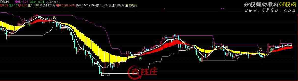 上线:=SMA(C,6.5,1); 下线:=SMA(C,13.5,1); 上线界:=SMA(C,3,1); 下线界:=SMA(C,8,1); STICKLINE(上线>下线 , 上线,下线 ,2.5, 0),COLORRED,LINETHICK2; STICKLINE(下线>上线,上线,下线,2.5,0),COLORYELLOW,LINETHICK2; DRAWTEXT( CROSS(上线,下线),LOW *0.98,'买' ),COLOR00FF00; DRAWTEXT(CROSS(下线界,上线界),H*1.02,'卖'),COLORYELLOW; BBI:=(MA(CLOSE,3)+MA(CLOSE,6)+MA(CLOSE,12)+MA(CLOSE,24))/4; UPR:=BBI+3*STD(BBI,13); DWN:=BBI-3*STD(BBI,13); 安全:=MA(CLOSE,60); LC:=REF(CLOSE,1); RSI:=SMA(MAX(CLOSE-LC,0),6,1)/SMA(ABS(CLOSE-LC),6,1)*100; A7:=(2*C+H+L)/4; 操作:MA(A7,5),LINETHICK2; 操作界:=MA(A7,5)*1.03; 操作界限:=MA(A7,5)*0.97; VAR1:LLV(A7,21); VAR2:HHV(A7,21); SK:=EMA((A7-VAR1)/(VAR2-VAR1)*100,7); SD:=EMA(0.667*REF(SK,1)+0.333*SK,5);
