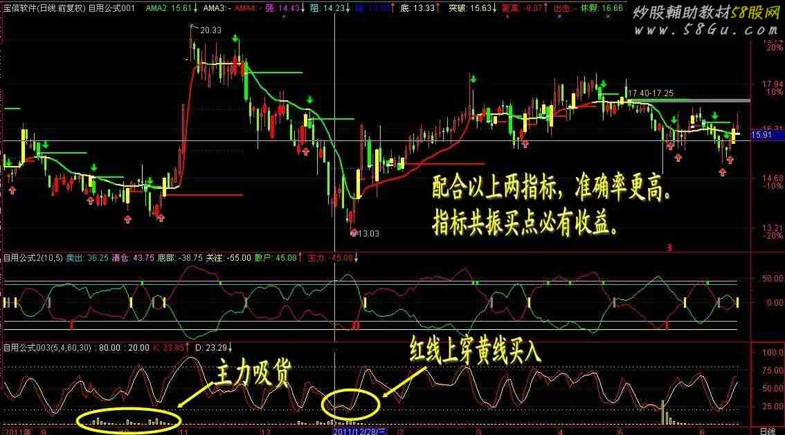 说明: 此指标属于短线指标,可监视主力吸筹动向,同时加入了优化后的KDJ原来而来,过滤了KDJ的无用买卖点,同时保持了KDJ的敏锐性,该指标配合我已发放的两个中短线指标。能很好的扑捉到个股起涨点,弥补配套的其他两个指标的滞后性。