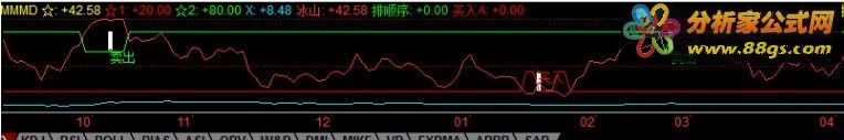 N1:=50;N:=8; 80,colorgreen; 20,colorred; LC:=REF(CLOSE,1); ☆:SMA(MAX(CLOSE-LC,0),N,1)/SMA(ABS(CLOSE-LC),N,1)*100,coloryellow; ☆1:IF(☆<20,40,20),colorred; ☆2:IF(☆>80,60,80),colorgreen; ☆↑:STICKLINE(FILTER(REF(☆,1)<20 AND ☆>REF(☆,1),5),20,40,8,0),colorred; ☆↓:STICKLINE(FILTER(REF(☆,1)>80 AND ☆<REF(☆,1),5),60,80,8,0),colorgreen; DRAWTEXT(FILTER(REF(☆,1)<20 AND ☆>REF(☆,1),5),40 ,'买入' ),colorred; DRAWTEXT(FILTER(REF(☆,1)>80 AND ☆<REF(☆,1),5),60 ,'卖出' ),colorgreen; x: REF(CLOSE,1); 冰山: SMA(MAX(CLOSE-x,0),8,1)/SMA(ABS(CLOSE-x),8,1)*100 ; 排顺序: IF(CROSS(冰山,15),20,0),STICK,linethick1; DRAWICON(排顺序>0,20,1 ); DRAWTEXT(CROSS(排顺序,11) , LOW,'→ 低吸 '),COLOr00B7B4 ; 买入A:IF(1/WINNER(CLOSE)>100 AND ABS((COST(50)-CLOSE)/CLOSE*100)>30 AND IF(1/WINNER(CLOSE)<REF(1/WINNER(CLOSE),1) AND REF(1/WINNER(CLOSE),1)>REF(1/WINNER(CLOSE),2),120,0),30,0),STICK,colorred , linethick2; |