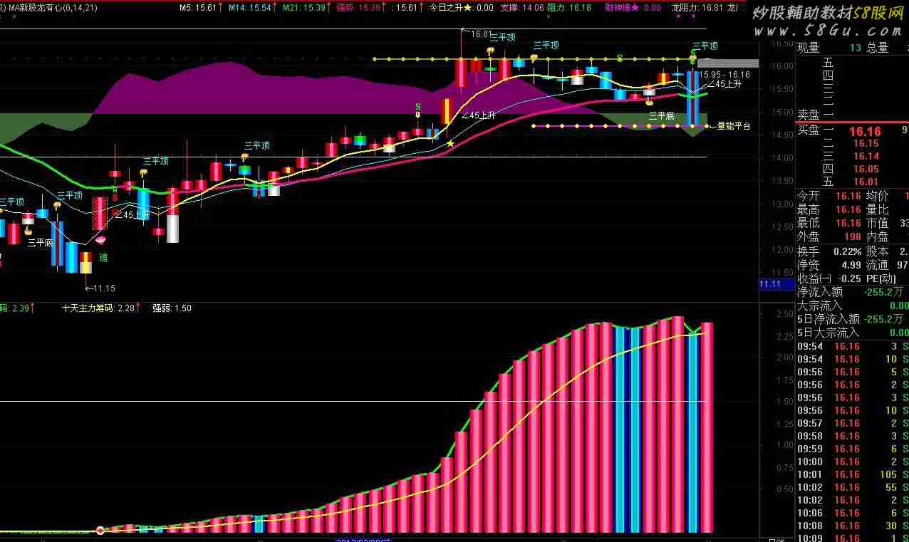 方法: 1、主力筹码线上穿十天主力筹码线。。买入 2、当底部没有筹码或只有一点点筹码时,建议等待有筹码柱的时候开始关注, 3、没有筹码了,那么拉升力就会小,当有筹码柱时,拉升力就会大了!!