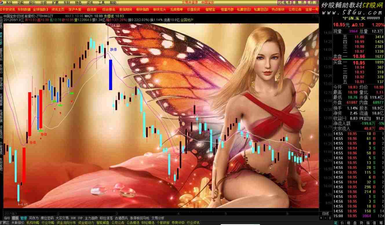 通达信修改背景教程 首先需要做好下面的几步: 1、根据自己的屏幕大小宽窄方扁选择合适尺寸的“.bmp”背景图片放在通达信T0002目录下的signals文件夹里。如bj1.bmp、BJ2.bmp..... 2、把下面的语句放在任何主图或幅图指标公式的最前面就调出了背景 A、K线图背景图:DRAWGBK(1,RGB(0,0,0),RGB(0,0,0),0,'BJ1',0); DRAWKLINE(HIGH,OPEN,LOW,CLOSE); ( 有K线主图源码的公式不需要后面的这句) B、分时图背景图: SJ:=IF(HOUR<12,(HOUR-9.5)*60+MINUTE,(HOUR-11)*60+MINUTE); DRAWGBK(SJ=1,RGB(0,0,0),RGB(0,0,0),0,'BJ2',0); 这样就OK了,下面看看效果如何: |