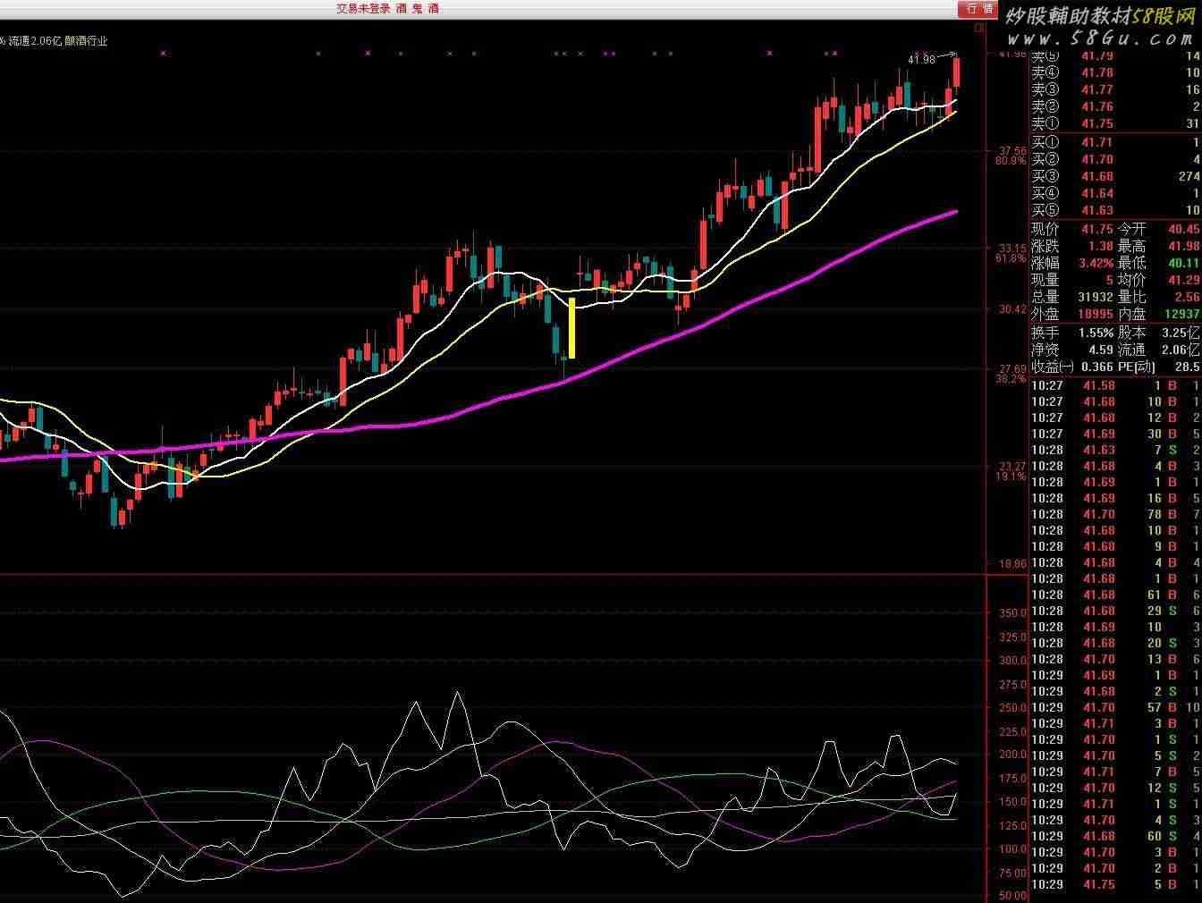 主图源码MA10:MA(C,10),LINETHICK2; MA20:MA(C,20),LINETHICK2; MA60:MA(C,60),LINETHICK4; MA30:=MA(C,30); VMA5:=MA(V,5); VMA34:=MA(V,34); DIF:=EMA(CLOSE,12)-EMA(CLOSE,26); DEA:=EMA(DIF,9); MACD1:=(DIF-DEA)*2; TYP:=(HIGH+LOW+CLOSE)/3; CCI:=(TYP-MA(TYP,14))/(0.015*AVEDEV(TYP,14)); SAR1:=SAR(4,2,20); DRAWICON(MACD1>-0.3 AND CROSS(CCI,90) AND C>MA20 AND MA10<MA20 AND MA10>MA60 AND MA60>REF(MA60,1),LOW,9); STICKLINE(C/REF(C,1)>1.095,C,O,2,0),COLORYELLOW; 副图源码 CR MID:=REF(HIGH+LOW,1)/2; CR:SUM(MAX(0,HIGH-MID),N)/SUM(MAX(0,MID-LOW),N)*100; MA1:REF(MA(CR,M1),1+M1/2.5); MA2:REF(MA(CR,M2),1+M2/2.5); MA3:REF(MA(CR,M3),1+M3/2.5); MA4:REF(MA(CR,M4),1+M4/2.5); |