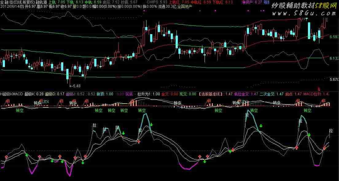 {通达信'H超级KMACD'源码} H0:=0.25; L0:=(H+L+C)/3; L1:=H0*(L0-MA(L0,21))/(AVEDEV(L0,21)); 超级K:SMA(L1,3,1); 超级D:SMA(超级K,3,1); 超级J:超级K*3-超级D*2,COLORCC66BB; H1:=3.809*H0+REVERSE(EMA(超级J,1)); H2:=-2.809*H0+REVERSE(EMA(超级J,1)); IF(超级J>H1,超级J,DRAWNULL),COLORAAAA33,LINETHICK3; 做顶:IF(超级J>H1,1,0),COLORCYAN,NODRAW; IF(超级J<H2,1,0),COLOR880088,NODRAW; 筑底:IF(超级J<H2,超级J,DRAWNULL),COLORDD00DD,LINETHICK3; H3:=CROSS(超级K,超级D); H4:=超级J<REF(超级J,1) AND REF(超级J,1)>REF(超级D,1) AND 超级J<=超级D; H5:=超级J>H1 AND NOT(REF(超级J>H1,1)); 拉升为1:IF(H5,1,0),COLORFFFFCC,NODRAW; 金叉:IF(H3,1,0),COLORRED,NODRAW; 死叉:IF(H4,1,0),COLORGREEN,NODRAW; 【选股基准线】:CONST(HHV(MAX(MAX(超级K,超级D),超级J),0))*1.1,COLORLIRED; DIF0:=EMA(DCLOSE,8)-EMA(DCLOSE,22); DEA0:=EMA(DIF0,7); MACD:=2*(DIF0-DEA0); D0:=HHV(ABS(MACD),100); M0:=COUNT(CROSS(DIF0,DEA0),BARSLAST(DEA0>=0)); M1:=BARSLAST(REF(CROSS(MACD,0),1)); M2:=BARSLAST(REF(CROSS(DEA0,DIF0),1)); M3:=LLV(MACD,4)>0 AND MACD<REF(MACD,1) AND REF(MACD,1)>REF(MACD,2) AND REF(MACD,2)>REF(MACD,3); M4:=HHV(MACD,4)<0 AND MACD>REF(MACD,1) AND REF(MACD,1)<REF(MACD,2) AND REF(MACD,2)<REF(MACD,3); 低位金叉:IF(CROSS(DIF0,DEA0) AND DIF0<-0.1,D0*0.4+【选股基准线】,0+【选股基准线】),COLORFF00FF; 二次金叉:IF(CROSS(DIF0,DEA0) AND DEA0<0 AND COUNT(M0=2,21)=1,D0*0.8+【选股基准线】, 0+【选股基准线】),COLORFFFF00; 启点:IF(FILTER(MACD>0 AND MACD>5*REF(MACD,1),2),D0+【选股基准线】,0+【选股基准线】),COLOR0044FF; 底背离:=REF(CLOSE,M1+1)>CLOSE AND MACD>REF(MACD,M1+1),COLORGREEN; D1:=7;D2:=30;D3:=6; DIF1:=EMA(C,D1)-EMA(C,D2),COLORFFFFFF; DEA1:=EMA(DIF1,D3),COLORFF6666; MACD1:=(DIF1-DEA1)*2,COLORSTICK,COLORRED; F0:=V*(O+C+H+L)/4; F1:=IF(V>0,F0/V,(O+C+H+L)/4); F2:=(F1-LLV(F1,5))/(HHV(F1,5)-LLV(F1,5)); F3:=SMA(F2,13,1); F4:=SMA(F3,13,1); F5:=3*F3-2*F4; F6:=2*F5-0.5; F7:=F1*(1-(F6-F4)/40); F8:=CROSS(F1,F7) AND C/REF(C,1)<1.03 AND SUM(DYNAINFO(23),5)>=3000; MACD拉升:IF(FILTER(F8,10) AND MACD1>0,D0*1.2+【选股基准线】,0+【选股基准线】),COLOR6600FF; MACD选长:=IF(CROSS(DIF1,DEA1),HHV(ABS(MACD1),100)+【选股基准线】,0),COLORLIRED; DIF:DIF0+【选股基准线】,COLORFFFFFF; DEA:DEA0+【选股基准线】,COLOR00AAAA; 0,COLOR888888,POINTDOT; DRAWTEXT(FILTER(F8,10) AND MACD1>0,D0*1.1+【选股基准线】,'拉'),COLOR6600FF; STICKLINE(H5,超级J*1.2,超级J*0.8,0,-1),COLORFFFFCC; DRAWTEXT(H5,超级J*1.25,'拉'),COLORFFFFCC; DRAWICON(H4,超级K*1.3,2); DRAWICON(H3,超级K*0.7,1); STICKLINE(MACD>=0 AND MACD>=REF(MACD,1),0+【选股基准线】,MACD+【选股基准线】,1,0),COLOR6699FF; STICKLINE(MACD>=0 AND MACD<=REF(MACD,1),0+【选股基准线】,MACD+【选股基准线】,1,-1),COLOR008800; STICKLINE(MACD<=0 AND MACD>=REF(MACD,1),0+【选股基准线】,MACD/2+【选股基准线】,1,0),COLORAAAAAA; STICKLINE(MACD<=0 AND MACD<=REF(MACD,1),0+【选股基准线】,MACD/2+【选股基准线】,1,-1),COLORCC6600; DRAWTEXT(FILTER(M3,3),-0.15+【选股基准线】,'转空'),COLOR00FF00; DRAWTEXT(FILTER(M4,3),D0*0.5+【选股基准线】,'转多'),COLORFFFFBB; DRAWTEXT(CROSS(DIF0,DEA0) AND DIF0<-0.1,D0*0.3+【选股基准线】,'低位X'),COLORFF00FF; DRAWTEXT(CROSS(DIF0,DEA0) AND DEA0<0 AND COUNT(M0=2,21)=1,D0*0.7+【选股基准线】, '二次X'),COLORFFFF00; DRAWTEXT(FILTER(MACD>0 AND MACD>5*REF(MACD,1),2),D0*0.9+【选股基准线】,'启'),COLOR0044FF; |