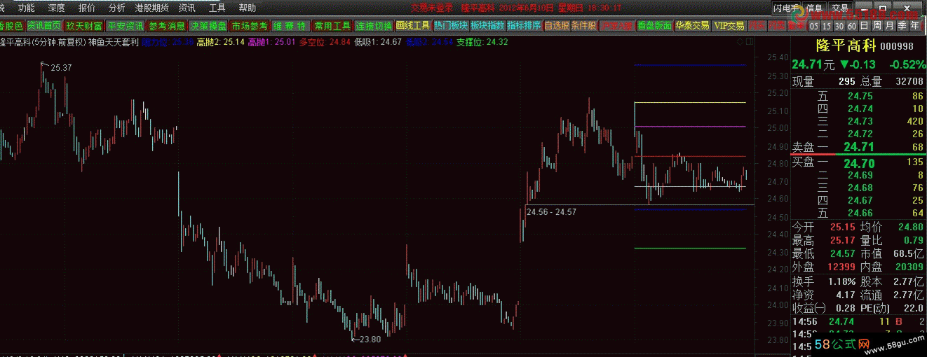思想:把买入操作程序化能有效避免临盘冲动、盲目、等人性弱点。 四分资金必胜法 1.把资金分成四份,当日二份,次日二份。(不管涨跌,每天买入二份;不管盈亏,每天卖出二份。半仓操作为铁律) 2.严格按照操作纪律之四分资金必胜法进行买入操作。 每天开盘后,准备二份资金分批买入股票。选择目标强势股用一份资金买入。另一份资金做保护。(如继续下跌>>>用剩余资金在下跌到位后补仓。)(如不再下跌>>>剩余资金可在其分时低点加仓。也可选择其他股票回调买入。) 3.关于机动仓 机动仓:当日全部操作完成后,下午或尾市拿一份资金做机动仓,以加仓为主,可以灵活机动,次日早市卖出。(注意:有机动仓时为3/4仓位)(本仓位的设立目的是为了在大好形势下不至于太呆板,使用须慎重,可有可无,平常心对待。) 此点的意义:对此点作纪律化制定,目的是把加仓纪律化,不呆板也不混乱,傻瓜化执行。 附:为方便操作,及系统化长期化管理,麻雀特为以上买入仓位命名: ① 四仓分别命名为:起、翦、颇、牧 ② 当日第一仓:白起仓 ③ 对白起仓的补仓或加仓:王翦仓(王翦仓与白起仓仓位相同) ④ 次日第一仓:廉颇仓 ⑤ 对廉颇仓的补仓或加仓:李牧仓(李牧仓与廉颇仓仓位相同) A:=CURRBARSCOUNT; A1:=DAY!=REF(DAY,1); A2:=BARSLAST(A1)+1; A3:=REF(IF(A2=1,1,A2),A2); A4:=CONST(REF(HHV(H,A3),A2)); A5:=CONST(REF(LLV(L,A3),A2)); A6:=DYNAINFO(3); A7:=REF(DYNAINFO(4),1); A8:=MA(AMO,A3)/MA(VOL,A3)/100; A9:=REF(MA((H+O+L+C)/4,A3),A2); A10:=IF(CAPITAL>0,REF(A8,A2),A9); 天价:=A10-A5+A6; 地价:=A5-A10+A6;差价:=天价-地价; GP2:=差价*0.792+地价; GP1:=差价*0.665+地价; DK:=差价*0.5+地价; DX1:=差价*0.335+地价; DX2:=差价*0.208+地价; 阻力位:IF(A<=CONST(A2),(REF(天价,A2-1)),DRAWNULL),COLORBLUE; 高抛2:IF(A<=CONST(A2),(REF(GP2,A2-1)),DRAWNULL); 高抛1:IF(A<=CONST(A2),(REF(GP1,A2-1)),DRAWNULL); 多空位:IF(A<=CONST(A2),(REF(DK,A2-1)),DRAWNULL),COLORRED,LINETHICK1; 低吸1:IF(A<=CONST(A2),(REF(DX1,A2-1)),DRAWNULL); 低吸2:IF(A<=CONST(A2),(REF(DX2,A2-1)),DRAWNULL); 支撑位:IF(A<=CONST(A2),(REF(地价,A2-1)),DRAWNULL),COLORGREEN; |