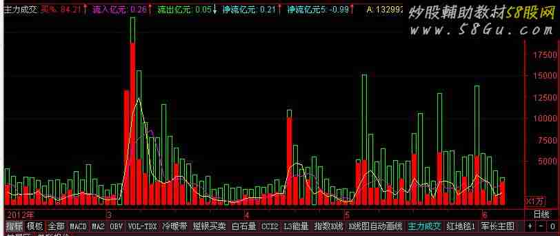 买:=IF(O=C AND (C-REF(C,1))/REF(C,1)*100>9.8,AMOUNT,AMOUNT/((H-L)*2-ABS(O-C))*(C-L)); 买%:买/AMOUNT*100,COLORRED,NODRAW; 流入亿元:AMOUNT*买%/10000000000,COLORMAGENTA,NODRAW; 流出亿元:AMOUNT/100000000-流入亿元,COLORGREEN,NODRAW; 净流亿元:流入亿元-流出亿元,COLORCYAN,NODRAW; 净流亿元5:SUM(流入亿元-流出亿元,5),COLORCYAN,NODRAW; STICKLINE(AMOUNT,0,AMOUNT,2,1),COLORGREEN; STICKLINE(买,0,买,2,0),COLORRED; A:MA(买,3)COLORYELLOW; B:MA(买,5)COLORMAGENTA; |