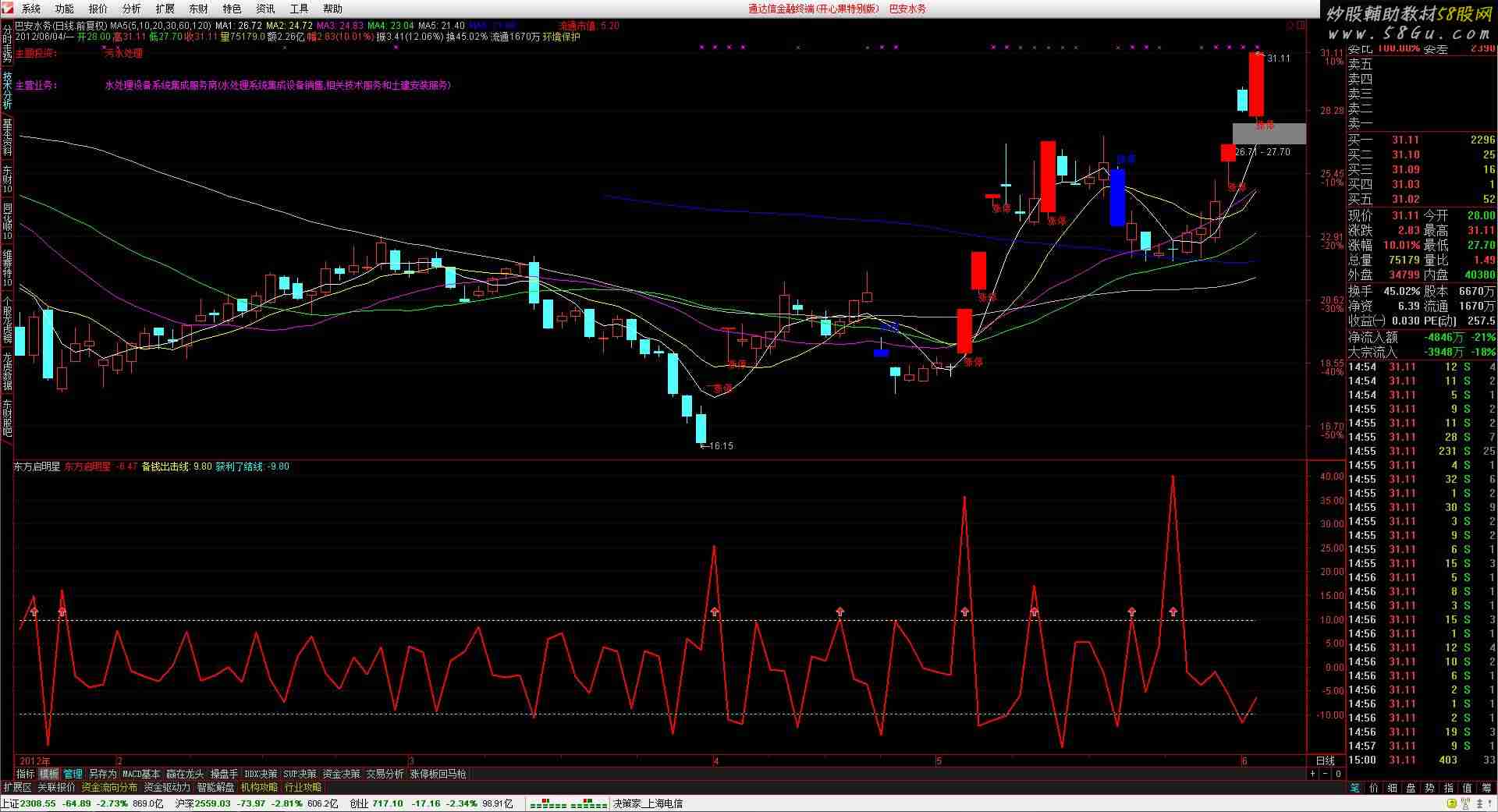 {东方启明星,副图} A1:=REF(C,1); A2:=DCLOSE;{大智慧如要使用,要去掉前面的D} A3:=(A2-A1)/A1*100; 东方启明星:A3-REF(A3,1),COLORRED,LINETHICK2; 备钱出击线:9.8,DOTLINE,COLORYELLOW; 获利了结线:-9.8,DOTLINE,COLORCYAN; DRAWICON(CROSS(东方启明星,备钱出击线),备钱出击线*1.18,1); {东方启明星,选股} A1:=REF(C,1); A2:=DCLOSE;{如想多选出股票,可以去掉前面的D} A3:=(A2-A1)/A1*100; 东方启明星:=A3-REF(A3,1); 备钱出击线:=9.8; 获利了结线:=-9.8; 选股:CROSS(东方启明星,备钱出击线); |