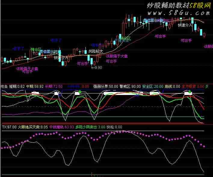 N:=8;M1:=5;M2:=4; VAR1:=(CLOSE-LLV(LOW,N))/(HHV(HIGH,N)-LLV(LOW,N))*100; VAR2:=SMA(VAR1,M1,1); VAR3:=SMA(VAR2,M2,1); VAR4:=3*VAR2-2*VAR3; VAR5:=LLV(LOW,33); VAR6:=HHV(HIGH,21); VAR7:=EMA((CLOSE-VAR5)/(VAR6-VAR5)*100,20)*0.998; VAR8:=SMA((CLOSE-LLV(LOW,10))/(HHV(HIGH,10)-LLV(LOW,10))*100,4,1); VAR9:=SMA((CLOSE-LLV(LOW,11))/(HHV(HIGH,11)-LLV(LOW,11))*100,4,1); VARA:=SMA((CLOSE-LLV(LOW,12))/(HHV(HIGH,12)-LLV(LOW,12))*100,4,1); VARB:=SMA((CLOSE-LLV(LOW,13))/(HHV(HIGH,13)-LLV(LOW,13))*100,4,1); VARC:=SMA((CLOSE-LLV(LOW,14))/(HHV(HIGH,14)-LLV(LOW,14))*100,4,1); VARD:=SMA((CLOSE-LLV(LOW,15))/(HHV(HIGH,15)-LLV(LOW,15))*100,4,1); VARE:=SMA(VARD*2,3,1); VARF:=(SMA(VARD*2,3,1)+SMA(VARC*2,3,1))/2; VAR10:=(HIGH+LOW+CLOSE)/3; VAR11:=(VAR10-MA(VAR10,14))/(0.015*AVEDEV(VAR10,14)); VAR12:=(VAR10-MA(VAR10,70))/(0.015*AVEDEV(VAR10,70)); VAR13:=IF(VAR11>=150 AND VAR11<200 AND VAR12>=150 AND VAR12<200,-10,0); VAR14:=IF(VAR11<=-150 AND VAR11>-200 AND VAR12<=-150 AND VAR12>-200,10,0); VAR15:=(CLOSE-MA(CLOSE,13))/MA(CLOSE,13)*100; VAR16:=100-ABS(VAR15); VAR17:=IF(BARSCOUNT(CLOSE)<13,97,IF(VAR16<88 AND VAR15>0,VAR4,97)); VAR18:=IF(BARSCOUNT(CLOSE)<13,3,IF(VAR16<92 AND VAR15<0,VAR4,3)); VAR19:=3*SMA((CLOSE-LLV(LOW,55))/(HHV(HIGH,55)-LLV(LOW,55))*100,10,1)-2*SMA(SMA((CLOSE-LLV(LOW,55))/(HHV(HIGH,55)-LLV(LOW,55))*100,10,1),6,1); TX: VAR17,COLORWHITE; 火眼地买天卖: MA(3*VAR2-2*VAR3,3),COLORYELLOW; 中线魔轨: VAR19, CIRCLEDOT,COLORF00FF0; 多阳少阴卖出: VAR18,COLOR00FF00; VAR1A:=EMA(HHV(HIGH,500),21); VAR2A:=EMA(HHV(HIGH,250),21); VAR3A:=EMA(HHV(HIGH,90),21); VAR4A:=EMA(LLV(LOW,500),21); VAR5A:=EMA(LLV(LOW,250),21); VAR6A:=EMA(LLV(LOW,90),21); VAR7A:=EMA((VAR4A*0.96+VAR5A*0.96+VAR6A*0.96+VAR1A*0.558+VAR2A*0.558+VAR3A*0.558)/6,21); VAR8A:=EMA((VAR4A*1.25+VAR5A*1.23+VAR6A*1.2+VAR1A*0.55+VAR2A*0.55+VAR3A*0.65)/6,21); VAR9A:=EMA((VAR4A*1.3+VAR5A*1.3+VAR6A*1.3+VAR1A*0.68+VAR2A*0.68+VAR3A*0.68)/6,21); VARAA:=EMA((VAR7A*3+VAR8A*2+VAR9A)/6*1.738,21); VARBA:=REF(LOW,1); VARCA:=SMA(ABS(LOW-VARBA),3,1)/SMA(MAX(LOW-VARBA,0),3,1)*100; VARDA:=EMA(IF(CLOSE*1.35<=VARAA,VARCA*10,VARCA/10),3); VAREA:=LLV(LOW,30); VARFA:=HHV(VARDA,30); VAR10A:=IF(MA(CLOSE,58),1,0); 快枪:EMA(IF(LOW<=VAREA,(VARDA+VARFA*2)/2,0),3)/618*VAR10A,COLORSTICK; |