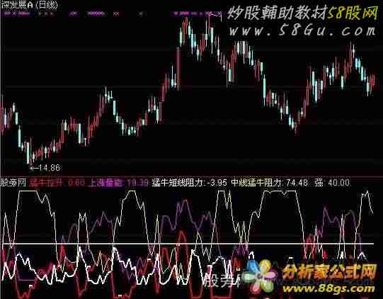 MAV:=(C*2+H+L)/4; SK := EMA(MAV,1) - EMA(MAV,40); SD := EMA(SK,5); B:=(SK-SD)*100; 猛牛拉升:IF(B<-20,-20,IF(B>100,100,B)),COLORRED,LINETHICK2; T:=(C-LLV(1.02*L,20))/(HHV(H,20)-LLV(L,20))*100; 上涨量能:IF(T>100,100,IF(T<0,0,T)),COLORFF00FF; A:=(HHV(HIGH,5)-CLOSE)/(HHV(HIGH,5)-LLV(LOW,5))*20; A1:=(3*A-2*SMA(A,3,1))*1; 猛牛短线阻力:IF(A1>100,100,IF(A1<-5,-5,A1)),, COLORWHITE LINETHICK2; Q1:=(HHV(HIGH,13)-CLOSE)/(HHV(HIGH,13)-LLV(LOW,13))*120,COLOR009900,LINETHICK2; 中线猛牛阻力:IF(Q1>100,100,Q1),COLORYELLOW; STICKLINE(猛牛短线阻力>猛牛拉升 ,猛牛短线阻力,猛牛短线阻力,1,0),COLORBLUE; 强: 40,LINETHICK2; |
