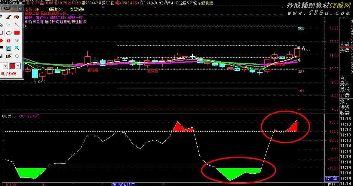 使用方法:绿色底部区域,红色操作区域;CCL上穿-100买入时机 ,CCL下破100卖出时机。 DRAWBAND(-100,RGB(0,250,0),"CCI.CCI",RGB(250,0,0)); DRAWBAND(100,RGB(0,0,0),-100,RGB(0,0,0)); CCI:"CCI.CCI"; DRAWBAND(100,RGB(250,0,0),100,RGB(250,0,0)),DOTLINE; DRAWBAND(-100,RGB(250,0,0),-100,RGB(250,0,0)),DOTLINE;