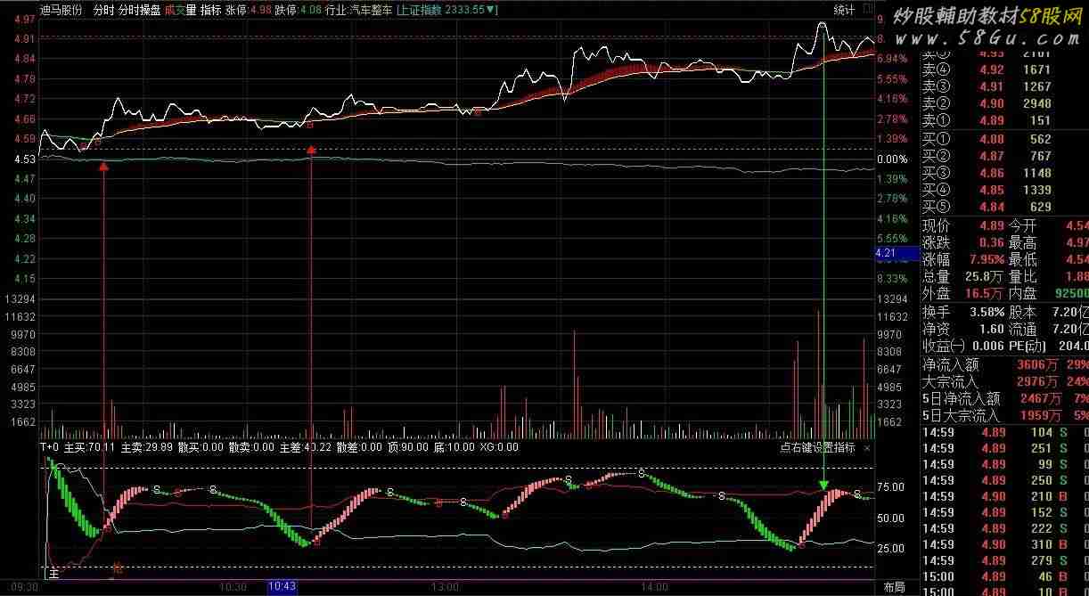 MA30:=EMA(CLOSE,30); 强弱:EMA(CLOSE,50),COLORYELLOW,LINETHICK1; IF(强弱<REF(强弱,1),强弱,DRAWNULL),COLOR00FF00,LINETHICK1; {IF(分水岭>REF(分水岭,1)*0.999,分水岭,DRAWNULL),COLORRED,LINETHICK3;} STICKLINE((MA30>强弱),MA30,强弱,1,0),COLOR000099; STICKLINE((MA30<强弱),MA30,强弱,1,0),COLOR00FF00; H1:=MAX(DYNAINFO(3),DYNAINFO(5)); L1:=MIN(DYNAINFO(3),DYNAINFO(6)); P1:=H1-L1; 阻力:L1+P1*7/8,COLOR0000FF DOTLINE; 支撑:L1+P1*0.5/8,COLOR00DD00 DOTLINE; 现价:CLOSE,COLORWHITE,LINETHICK1; 涨幅:=(DYNAINFO(7)-DYNAINFO(3))/DYNAINFO(3)*100; 即时涨幅:=(C-DYNAINFO(3))/DYNAINFO(3)*100; MA3:="MA.MA3#DAY"(5,10,20); DRAWTEXT(LONGCROSS(支撑,C,2) AND 涨幅>-9.5,支撑*1.001,'B'),COLORRED; DRAWTEXT(LONGCROSS(C,强弱,2) AND 强弱>REF(强弱,1) AND 涨幅>0 AND 即时涨幅<5,强弱*0.998,'B'),COLORRED; DRAWTEXT(LONGCROSS(C,阻力,2),C,'S'),COLORGREEN;{抛}; |