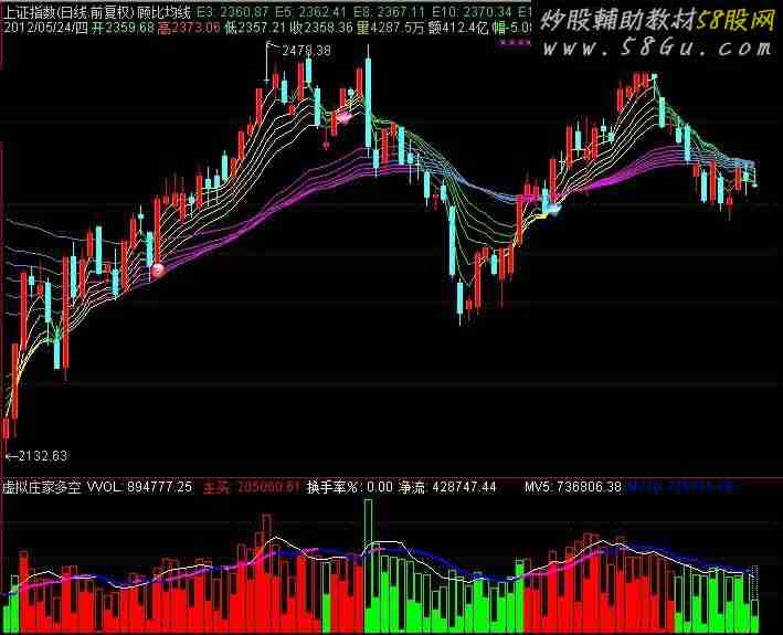 把虚拟量加入到了庄家多空里,顺手加了根变色的十均量,不喜欢的可以去掉。