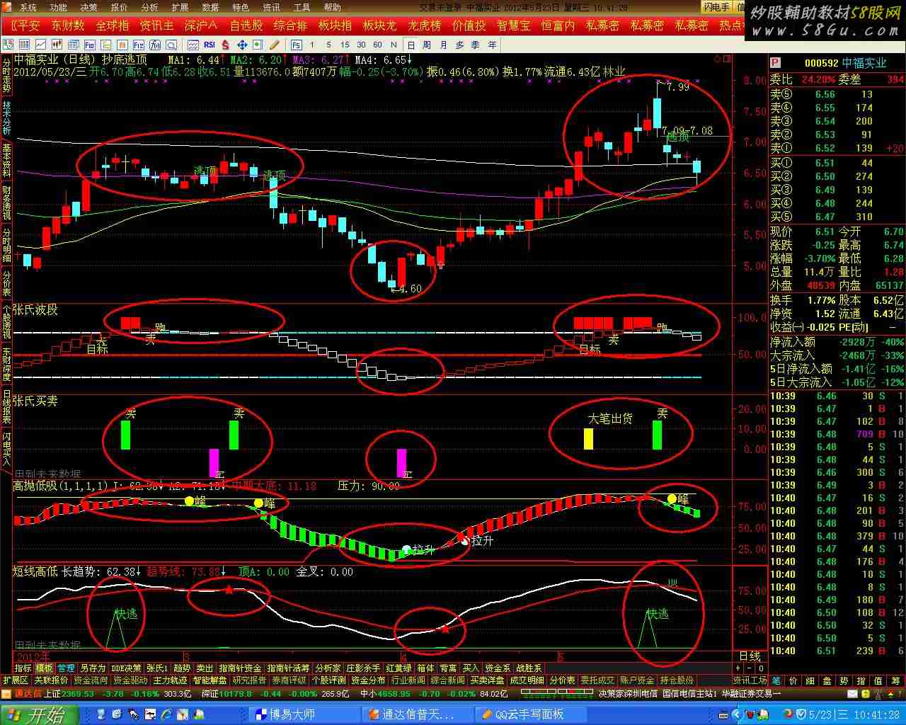 修改整理的张氏糸列{贴图.源码.有未来.副图}张氏波段VARA:=LLV(LOW,35); VARB:=HHV(HIGH,30); VARC:=EMA((CLOSE-VARA)/(VARB-VARA)*4,4)*25; QS:= VARC,COLORWHITE; STICKLINE(VARC<10 && 100*(HHV(HIGH,14)-CLOSE)/(HHV(HIGH,14)-LLV(LOW,14))>97,0,25,3,0),COLORYELLOW; STICKLINE(VARC>90,100,85,3,0),COLORRED; VARD:=87.5; VARE:=(VARC-LLV(VARC,4))/(HHV(VARC,4)-LLV(VARC,4))*4*25; 一:=CROSS(QS,VARD) AND VARE=100; 二:=CROSS(VARD,QS); 三:=CROSS(QS,VARE) AND QS>87; DRAWTEXT(一,56,'目标'); DRAWTEXT(二,85,'跑'); DRAWTEXT(三,70,'卖'); VAR6:=(2*CLOSE+HIGH+LOW)/4; VAR8:=LLV(LOW,30); VARAA:=HHV(HIGH,30); B:=EMA((VAR6-VAR8)/(VARAA-VAR8)*100,8); B1:=EMA(B,5); STICKLINE(B>0 && B-B1>=0,79,80,3,0),COLORWHITE; STICKLINE(B>0 && B-B1<0,79,80,3,0),COLORCYAN; STICKLINE(B>0 && B-B1>=0,49,50,3,0),COLORRED; STICKLINE(B>0 && B-B1<0,49,50,3,0),COLORRED; STICKLINE(B>0 && B-B1>=0,19,20,3,0),COLORWHITE; STICKLINE(B>0 && B-B1<0,19,20,3,0),COLORCYAN; STICKLINE(B-B1>0,B,B1,3,1),COLORRED; STICKLINE(B-B1<0,B,B1,3,1),COLORWHITE;张氏买卖VAR3:=(CLOSE-MA(CLOSE,0))/MA(CLOSE,0)*100; VAR4:=(CLOSE-MA(CLOSE,0))/MA(CLOSE,0)*100; VAR5:=(CLOSE-MA(CLOSE,0))/MA(CLOSE,0)*100; VAR6:=(VAR3+VAR4+VAR5)/3; VAR7:=EMA(VAR6,5); VAR8:=IF(VAR6<=-20,10,0); VAR9:=HHV(VAR8,10); STICKLINE(VAR8=10,20,10,3,0),COLORRED; VARA:=IF(VAR9 && CROSS(MA(CLOSE,3),MA(CLOSE,5)),20,0); STICKLINE((VARA=20),0,10,3,0),COLORWHITE; VARC:=(ZIG(3,5)>REF(ZIG(3,5),1)) && (REF(ZIG(3,5),1)<=REF(ZIG(3,5),2)) && (REF(ZIG (3,5),2)<=REF(ZIG(3,5),3)); VARD:=(ZIG(3,5)<REF(ZIG(3,5),1)) && (REF(ZIG(3,5),1)>=REF(ZIG(3,5),2)) && (REF(ZIG (3,5),2)>=REF(ZIG(3,5),3)); STICKLINE((VARC=1),(-14),0,3,0),COLORMAGENTA; DRAWTEXT((VARC=1),(-14),'买'); STICKLINE((VARD=1),14,0,3,0),COLORGREEN; DRAWTEXT((VARD=1),18,'卖'); VARE:=MA(100*(CLOSE-LLV(CLOSE,34))/(HHV(HIGH,34)-LLV(LOW,34)),5)-20; VARF:=100-3*SMA((CLOSE-LLV(LOW,75))/(HHV(HIGH,75)-LLV(LOW,75))*100,20,1)+2*SMA(SMA ((CLOSE-LLV(LOW,75))/(HHV(HIGH,75)-LLV(LOW,75))*100,20,1),15,1); VAR10:=100-3*SMA((OPEN-LLV(LOW,75))/(HHV(HIGH,75)-LLV(LOW,75))*100,20,1)+2*SMA(SMA ((OPEN-LLV(LOW,75))/(HHV(HIGH,75)-LLV(LOW,75))*100,20,1),15,1); VAR11:=VARF<REF(VAR10,1) && VOL>REF(VOL,1) && CLOSE>REF(CLOSE,1); DRAWTEXT(VAR11 && COUNT(VAR11,30)=1,15,'大资金活动'); STICKLINE(VAR11 && COUNT(VAR11,30)=1,1,10,3,0),COLORCYAN; VAR12:=(HIGH+LOW+CLOSE)/3; VAR13:=(VAR12-MA(VAR12,14))/(0.015*AVEDEV(VAR12,14)); VAR14:=(VAR12-MA(VAR12,70))/(0.015*AVEDEV(VAR12,70)); VAR15:=IF(VAR13>=150 && VAR13<200 && VAR14>=150 && VAR14<200,10,0); VAR16:=IF(VAR13<=-150 && VAR13>-200 && VAR14<=-150 && VAR14>-200,-10,VAR15); VAR17:=(CLOSE-MA(CLOSE,13))/MA(CLOSE,13)*100; VAR18:=100-ABS(VAR17); VAR19:=IF(VAR18<90,VAR18,100); VAR1A:=IF(VARE>0,VARE,0); VAR1B:=IF(VAR14>=200 && VAR13>=150,15,IF(VAR14<=-200 && VAR13<=-150,-15,VAR16))+60; VAR1C:=VAR1A>48 && VAR1B>60 && VAR19<100; DRAWTEXT(VAR1C && COUNT(VAR1C,30)=1,15,'大笔出货'); STICKLINE(VAR1C && COUNT(VAR1C,30)=1,0,10,3,0),COLORYELLOW;高抛低吸VAR2:=(C-REF(C,1))/REF(C,1)*100; VAR3:=(C-LLV(L,18))/(HHV(H,18)-LLV(L,18))*100; VAR4:=SMA(VAR3,9,1); VAR5:=SMA(VAR4,3,1); J:3*VAR4-2*VAR5,COLOR00FFFF; VAR6:=J>1*REF(J,1); VAR7:=LLVBARS(L,50); VAR8:=SUM(V,VAR7); VAR9:=HHVBARS(H,50); VAR10:=SUM(V,VAR9); VAR11:=(C-REF(O,VAR9))/REF(O,VAR9)*100; VAR12:=VAR10/CAPITAL*100; VAR13:=(C-REF(O,VAR7))/REF(O,VAR7)*100; VAR14:=VAR8/CAPITAL*100; VAR15:=MA(WINNER(C),N)*100; VAR16:=EMA(VAR4,N); A2:EMA(VAR4,N),COLORFFDDCC; A3:=EMA(A2,N); A4:=EMA(A3,N); A5:=EMA(A4,N); A6:=EMA(A5,N); A7:=EMA(A6,N); VAR17:=EMA(A7,N); VAR18:=EMA(VAR17,N); VAR19:=EMA(VAR18,N); AA:=EMA(A5,N2); 中期大底:LLV(J,AA),LINETHICK2,COLOR0000FF; 上:=IF(MA(H,3)*1.05,30,0)*10-AA; 下:=IF(MA(L,3)*0.96,30,0)*2/中期大底; 中:=IF(MA(H,3)*1.05,30,0); 电:=J; DRAWTEXT(CROSS(A4,AA) AND VAR11<N3,AA,'●底'),COLORFFFF00; DRAWTEXT(CROSS(A2,J) AND A2>N4,A2+4.22,'●峰'),COLOR00FFFF; DRAWTEXT(CROSS(J,A2) AND VAR6 AND A2<20 AND VAR2>9 OR A2>1*REF(A2,1) AND VAR2>4 AND A2<60,A2,'●拉升'),COLORFFFFCC; STICKLINE(J>=A2,A2,J,2,0),COLOR0000FF; STICKLINE(J<=A2,J,A2,2,0),COLOR00FF00; 压力:HHV(J,60),COLOR00FFFF; 支撑:=LLV(AA,13);短线高低 Q2:=(CLOSE-LLV(LOW, 18))/(HHV(HIGH, 18)-LLV(LOW, 18))*100; Q3:=SMA(Q2, 9, 1); Q4:=SMA(Q3, 3, 1); 长趋势:3*Q3-2*Q4,COLORWHITE,LINETHICK2; 趋势线:EMA(Q3, 3),COLORRED,LINETHICK2; DRAWTEXT(CROSS(趋势线, 长趋势) AND REF(长趋势,1)>80, REF(长趋势,3), '顶'),COLOR00FF00,LINETHICK5; 买: DRAWTEXT(REF(CROSS(长趋势,趋势线),1) AND 长趋势>1.3*趋势线,趋势线,'买'),COLORRED,LINETHICK1; VAR3:=PEAKBARS(3,15,1)<10; VAR5:=IF(VAR3=1,2,0); 顶:= IF(VAR5=2,2,0); 顶A:IF(顶>REF(顶,1),50,0),COLORGREEN; DRAWTEXT(顶A=50,45,'快逃'),COLOR00FF00; 金叉: CROSS(长趋势,趋势线); DRAWTEXT(金叉,趋势线,'★'),COLORRED;