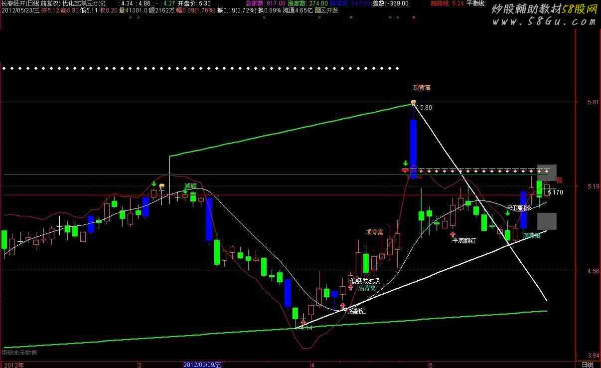 NN:=100; AA:=REF(H,N)=HHV(H,2*N+1); AA1:=REF(L,N)=LLV(L,2*N+1); QY:=BACKSET(AA,N+1); QY1:=BACKSET(AA1,N+1); CC:=FILTER(QY,N) AND H=HHV(H,N+1); CC1:=FILTER(QY1,N) AND L=LLV(L,N+1); DDD:=BARSLAST(CC); DD1:=BARSLAST(CC1); GDTS:=IF(CC,CURRBARSCOUNT,0); DDTS:=IF(CC1,CURRBARSCOUNT,0); DINGBUTS:=IF(DDD,REF(GDTS,DDD),GDTS); DDTS1:=IF(DD1,REF(DDTS,DD1),DDTS); GDCS1:=CONST(DINGBUTS); DDCS1:=CONST(DDTS1); GDCS13:=CONST(REF(HIGH,GDCS1-1)); DDCS13:=CONST(REF(L,DDCS1-1)); DINGBUTS1:=REF(DINGBUTS,DDD+1); DDTS2:=REF(DDTS1,DD1+1); GDCS2:=CONST(DINGBUTS1); DDCS2:=CONST(DDTS2);M:=INTPART(3*N/5); AAA:=REF(H,M)=HHV(H,2*M+1); QYY:=BACKSET(AAA,M+1); CCC:=FILTER(QYY,M) AND H=HHV(H,M+1); DDDD:=BARSLAST(CCC),NODRAW; GDTSS:=IF(CCC,CURRBARSCOUNT,0); DINGBUTSS:=IF(DDDD,REF(GDTSS,DDDD),GDTSS); GDCS11:=CONST(DINGBUTSS); DINGBUTS11:=REF(DINGBUTSS,DDDD+1); GDCS22:=CONST(DINGBUTS11); AA11:=REF(L,M)=LLV(L,2*M+1); QY11:=BACKSET(AA11,M+1); CC11:=FILTER(QY11,M) AND L=LLV(L,M+1); DD11:=BARSLAST(CC11); DDTSS:=IF(CC11,CURRBARSCOUNT,0); DDTS11:=IF(DD11,REF(DDTSS,DD11),DDTSS); DDCS11:=CONST(DDTS11); DDTS22:=REF(DDTS11,DD11+1); DDCS22:=CONST(DDTS22); ZGD:=HHV(H,60)*1.01.00; ZGD2:=CONST(ZGD); 高点压力M:=DRAWLINE(CURRBARSCOUNT=GDCS22,H,CURRBARSCOUNT=GDCS11,H,1),COLORRED,LINETHICK2; 低点支撑M:=DRAWLINE(CURRBARSCOUNT=DDCS22,L,CURRBARSCOUNT=DDCS11,L,1) COLORRED,LINETHICK2; 高点压力1:=DRAWLINE(CURRBARSCOUNT=GDCS2,H,CURRBARSCOUNT=GDCS1,H,1) ,COLORBLUE,LINETHICK2; 低点支撑1:=DRAWLINE(CURRBARSCOUNT=DDCS2,L,CURRBARSCOUNT=DDCS1,L,1),COLORBLUE,LINETHICK2;高点:=CONST(HHV(H,NN)); 低点:=CONST(LLV(L,NN)); GJ:=(C+H+L+O)/4; 明日阻力:=L+(GJ-L)+(C-L); 明日支撑:=L+(C-GJ); 明日阻力2:=L+2*(GJ-L)+(C-L); 明日支撑2:=L+(C-GJ)-(GJ-L); 今日阻力:=CONST(REF(明日阻力 , 1)),NODRAW; 今日支撑:=CONST(REF(明日支撑 , 1)),NODRAW; 今日阻力2:=CONST(REF(明日阻力2 , 1)),NODRAW; 今日支撑2:=CONST(REF(明日支撑2 , 1)),NODRAW; STICKLINE(ISLASTBAR,今日阻力,今日阻力2,10,0),COLOR555555; DRAWTEXT(ISLASTBAR,今日阻力,' 阻'),COLOR0000FF; STICKLINE(ISLASTBAR,今日支撑,今日支撑2,10,0),COLOR555555; DRAWTEXT(ISLASTBAR,今日支撑,' 支'),COLOR00FF00; IF(BETWEEN(高点压力M,高点,低点),高点压力M,DRAWNULL),COLORWHITE,LINETHICK2; IF(BETWEEN(低点支撑M,高点,低点),低点支撑M,DRAWNULL),COLORWHITE,LINETHICK2; IF(BETWEEN(高点压力1,高点,低点),高点压力1,DRAWNULL),COLORGREEN,LINETHICK2; IF(BETWEEN(低点支撑1,高点,低点),低点支撑1,DRAWNULL),COLORGREEN,LINETHICK2;涨停:=C>REF(C,1)*1.099; 开盘价:REF(O,BARSLAST(涨停)),COLORWHITE,CIRCLEDOT; DRAWNUMBER(涨停,L,O),COLORRED; C3:=REF(C,1); 跌停:=IF((C3-C)*100/C3>=(10-0.01*100/C3),1,0); STICKLINE(跌停,OPEN,CLOSE,4,0),COLORGREEN; STICKLINE(跌停,OPEN,CLOSE,3,0),COLORBLUE; DRAWTEXT(跌停,H+0.3,'跌停'),COLORBLUE; STICKLINE(V>=REF(V,1)*2,O,C,3,0)COLORBLUE; STICKLINE(V>=REF(V,1)*2,H,L,0,0)COLORBLUE; STICKLINE(C/REF(C,1)>=1.098,O,C,3,0)COLORRED; STICKLINE(C/REF(C,1)>=1.098,H,L,0,0)COLORRED; STICKLINE(C/REF(C,1)<=0.901,O,C,3,0)COLORBLUE; STICKLINE(C/REF(C,1)<=0.901,H,L,0,0)COLORBLUE; ZT:=C/REF(C,1)>1.097; BH:=BARSLAST(ZT); CZ:=REF(H,BH)-REF(L,BH); STICKLINE(C AND BH<100,(REF(L,BH)+CZ*0.5),(REF(L,BH)+CZ*0.5),3,0),COLORRED; STICKLINE(C AND BH<100,REF(L,BH),REF(L,BH),3,0),COLORWHITE,CIRCLEDOT; STICKLINE(C AND BH<100,REF(H,BH),REF(H,BH),3,0),COLORWHITE;HHH:=CONST(HHV(H,100)); LLL:=CONST(LLV(L,100)); HH:=HHH-LLL; TJ2:= CURRBARSCOUNT=58; 总家数:INDEXADV+INDEXDEC,NODRAW; 涨家数:INDEXADV,NODRAW; 跌家数:INDEXDEC,NODRAW; 差数:INDEXADV-INDEXDEC,NODRAW;半分位:=(O+C)/2; 昨半分位:=REF(半分位,1); STICKLINE(ISLASTBAR,昨半分位,昨半分位,10,0); DRAWNUMBER(ISLASTBAR,昨半分位,昨半分位); DRAWTEXT(ISLASTBAR,昨半分位,' 昨半分位'); 底:=SUM(MA(CLOSE,10),9)/11.114; DRAWTEXT(CROSS(LOW,底) AND REF(底,1)>REF(HIGH,1) OR CROSS(HIGH,底),L,'---铁底'),COLOR00FF00; VAR3:=PEAKBARS(3,10,1)<10; VAR5:=IF(VAR3=1,2,0); 顶:= IF(VAR5=2,2,0); DRAWICON(顶>REF(顶,1),H*1.005,2); DRAWICON(CROSS(ZIG(3,10) ,REF(ZIG(3 ,10),1)),L,1); DRAWICON(CROSS(REF(ZIG(3,10),1),ZIG(3,10)),H,12); DRAWGBK(1,RGB(0,0,0),RGB(0,0,0),0,'00',0);生命线:=(EMA(C,10)*14+EMA(C,20)*6)/20; 生命线12:=(EMA(生命线,10)*14+EMA(生命线,20)*6)/20; 变异1:=生命线+生命线-生命线12; 变异线1:=(EMA(变异1,10)*14+EMA(变异1,20)*6)/20; 趋势线:变异1+变异1-变异线1,COLORRED; 平衡线:(EMA(趋势线,10)*14+EMA(趋势线,20)*6)/20,COLORWHITE;AAA1:=CLOSE>REF(CLOSE,1) AND REF(CLOSE,1)>REF(CLOSE,2) AND REF(CLOSE,1)<REF(CLOSE,3) AND IF(REF(CLOSE,3)<REF(CLOSE,4),1,IF(REF(CLOSE,4)<REF(CLOSE,5),REF(CLOSE,1)<REF(CLOSE,4) OR (REF(CLOSE,2)<REF(CLOSE,4) AND REF(CLOSE,3)>=REF(CLOSE,5)),IF(REF(CLOSE,5)<REF(CLOSE,6),1,REF(CLOSE,6)<REF(CLOSE,7)))); BBB1:=CLOSE<REF(CLOSE,1) AND REF(CLOSE,1)<REF(CLOSE,2) AND REF(CLOSE,1)>REF(CLOSE,3) AND IF(REF(CLOSE,3)>REF(CLOSE,4),1,IF(REF(CLOSE,4)>REF(CLOSE,5),REF(CLOSE,1)>REF(CLOSE,4) OR (REF(CLOSE,2)>REF(CLOSE,4) AND REF(CLOSE,3)<=REF(CLOSE,5)),IF(REF(CLOSE,5)>REF(CLOSE,6),1,REF(CLOSE,6)>REF(CLOSE,7)))); DRAWICON(AAA1 AND CLOSE>REF(OPEN,3),0.99*LOW,1); DRAWICON(BBB1 AND CLOSE<REF(CLOSE,3),HIGH*1.01,2); DRAWTEXT(AAA1 AND CLOSE>REF(OPEN,3),LOW*0.98,'平底翻红'); DRAWTEXT(BBB1 AND CLOSE<REF(CLOSE,3),HIGH*1.02,'平顶翻绿'); LC:=REF(CLOSE,1); RSI:=((SMA(MAX((CLOSE - LC),0),3,1) / SMA(ABS((CLOSE - LC)),3,1)) * 100); FF:=EMA(CLOSE,3); MA15:=EMA(CLOSE,21); DRAWTEXT(CROSS(FF,MA15),(LOW * 0.99),'底背离'),COLORA6E500; DRAWTEXT(CROSS(88,RSI),(HIGH * 1.02),'顶背离'),COLOR1880FF; MTM:=C-REF(C,1); DX:=100*EMA(EMA(MTM,6),6)/EMA(EMA(ABS(MTM),6),6); 买:=IF(LLV(DX,2)=LLV(DX,7) AND COUNT(DX<0,2) AND CROSS(DX,MA(DX,2)),1,0);VAR26:=(CLOSE-LLV(LOW,21))/(HHV(HIGH,21)-LLV(LOW,21))*100; VAR27:=REVERSE(VAR26); VAR28:=SMA(VAR26,3,1); 波段王:= SMA(VAR28,3,1); 波段鬼:= SMA(波段王,8,1); 地狱:DRAWICON(CROSS(波段王,波段鬼) AND 波段王<40,LOW,1); 天堂: DRAWICON(CROSS(波段鬼,波段王) AND 波段鬼>75,HIGH,2)