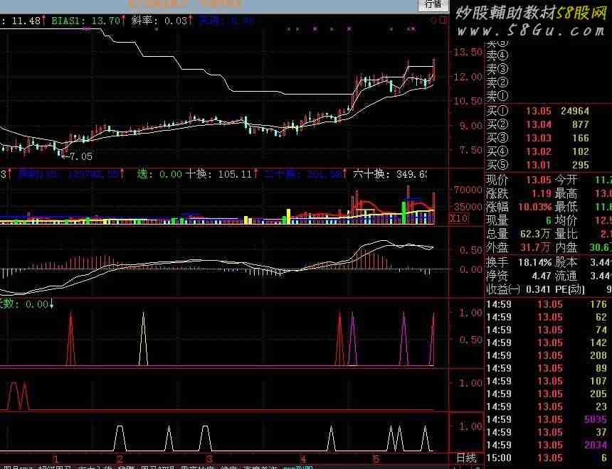 个人自用的分时抓涨停指标(通达信 分时指标 副图 贴图)