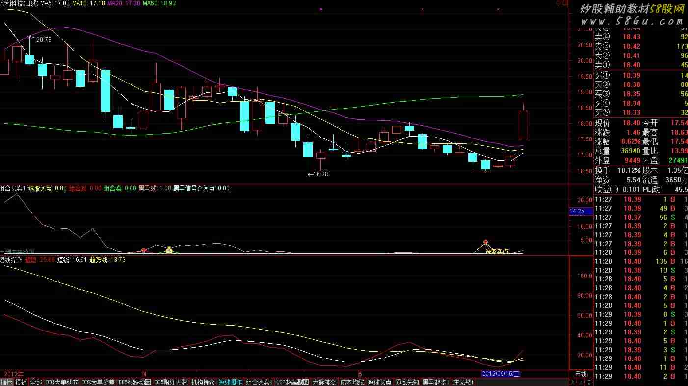 我来上张自用的,短线操作 副图、指标文件、说明、贴图说明:黄线是趋势线。当红线和白线相交拐头向上时候就是买入点,希望大家多多收益,也谢谢论坛里无私奉献的管理。