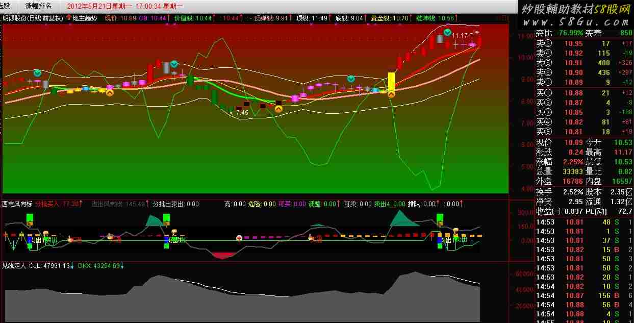 地主趋势 CC:=ABS((2*CLOSE+HIGH+LOW)/4-MA(CLOSE,20))/MA(CLOSE,20); DD:=DMA(CLOSE,CC); 上:=(1+7/100)*DD; 下:=(1-7/100)*DD; MA5:=MA(C,5); ZLCM:=EMA(WINNER(CLOSE)*70,3); SHCM:=EMA((WINNER(CLOSE*1.1)-WINNER(CLOSE*0.9))*80,3); DRAWGBK(MA5>=REF(MA5,1),RGB(0,150,0),RGB(150,0,0),0,'',0); DRAWGBK(MA5<=REF(MA5,1),RGB(150,0,0),RGB(0,150,0),0,'',0); ZZLKP:=ZLCM/(ZLCM+SHCM)*100; ZZLJJ:=EMA(ZZLKP,89); 现价: IF(DYNAINFO(4)=0,C,DYNAINFO(7)),COLOR0077FF,POINTDOT; KC:=(2*C+H+L+O)/5; CB:MEMA(KC,5); XL:=SLOPE(CB,3)>0; 价值线:CB; IF(XL,CB,DRAWNULL),LINETHICK3,COLORRED; IF(XL-1,CB,DRAWNULL),LINETHICK3,COLORGREEN; 反弹线:MA(CB,10) ,COLOR9999FF,LINETHICK3; 顶线:上+ABS(CB-MA(CB,10))*0.9,COLORWHITE; 底线:下-ABS(CB-MA(CB,10)),COLORWHITE; VAR1:=(HIGH+LOW+OPEN+CLOSE)/4; VAR3:=2*EMA(LLV(VAR1,7),10)-VAR1; 黄金线:MA(3*VAR1-2*SMA(VAR1,2,1),12),COLORYELLOW; 乾坤线:3*VAR3-2*SMA(VAR3,10,1),COLORGREEN; ZJLRQD:=ZZLKP-ZZLJJ; AA:=EMA(ZJLRQD,1); BB:=EMA(AA,5); TYX3:=MA(REF(HHV((C+L+O+H)/4,30),1),3); TYX4:=MA((C+L+O+H)/4,13); TYX5:=EMA((C+L+O+H)/4,21); STICKLINE(C<TYX5 AND C>O,H,L,0,0),COLORRED; STICKLINE(C<TYX5 AND C>O,C,O,3,1),COLORRED; STICKLINE(C<TYX5 AND C<O,H,L,0,0),COLOR007700; STICKLINE(C<TYX5 AND C<O,C,O,3,0),COLOR005500; STICKLINE(C<TYX5 AND C<O,C,O,2,0),COLOR006600; STICKLINE(C<TYX5 AND C<O,C,O,1,0),COLOR007700; STICKLINE(C>TYX5 AND C<O,H,L,0,0),COLORFFDD44; STICKLINE(C>TYX5 AND C<O,C,O,3,0 ),COLORFF7700; STICKLINE(C>TYX5 AND C<O,C,O,2,0 ),COLORFFAA22; STICKLINE(C>TYX5 AND C<O,C,O,1 ,0 ),COLORFFDD44; STICKLINE(C>TYX5 AND C>O,H,L,0,0 ),COLOR00EEFF; STICKLINE(C>TYX5 AND C>O,C,O,3,0 ),COLOR00AAFF; STICKLINE(C>TYX5 AND C>O,C,O,2,0 ),COLOR00CCFF; STICKLINE(C>TYX5 AND C>O,C,O,1,0 ),COLOR00EEFF; STICKLINE(C>TYX4 AND C>O,H,L,0,0),COLORFF66AA; STICKLINE(C>TYX4 AND C>O,C,O,3,0 ),COLORFF11FF; STICKLINE(C>TYX4 AND C>O,C,O,2,0 ),COLORFF44FF; STICKLINE(C>TYX4 AND C>O,C,O,1,0 ),COLORFF66FF; STICKLINE(C>TYX4 AND C<O,H,L,0,0),COLOR999999; STICKLINE(C>TYX4 AND C<O,C,O,3,0),COLOR555555; STICKLINE(C>TYX4 AND C<O,C,O,2,0),COLOR777777; STICKLINE(C>TYX4 AND C<O,C,O,1,0),COLOR999999; STICKLINE(C>TYX3 AND C>O,H,L,0,0),COLOR0000DD; STICKLINE(C>TYX3 AND C>O,C,O,3,0),COLOR000099; STICKLINE(C>TYX3 AND C>O,C,O,2,0),COLOR0000BB; STICKLINE(C>TYX3 AND C>O,C,O,1,0),COLOR0000DD; STICKLINE((C-REF(C,1))*100/REF(C,1)>=(10-0.01*100/REF(C,1)),OPEN,CLOSE,3,0),COLORYELLOW; STICKLINE((REF(C,1)-C)*100/REF(C,1)>=(10-0.01*100/REF(C,1)),OPEN,CLOSE,3,0),COLORGREEN; 主力资金试盘:=IF(CROSS(AA,BB),3,0),STICK,LINETHICK4,COLOR0080FF; 主力对倒出货:=IF(CROSS(BB,AA),-3,0),STICK,LINETHICK4,COLOR00FF00; DRAWICON(主力资金试盘>0,(LOW * 0.98),34); DRAWICON(主力对倒出货<0,(H*1.03),35); |