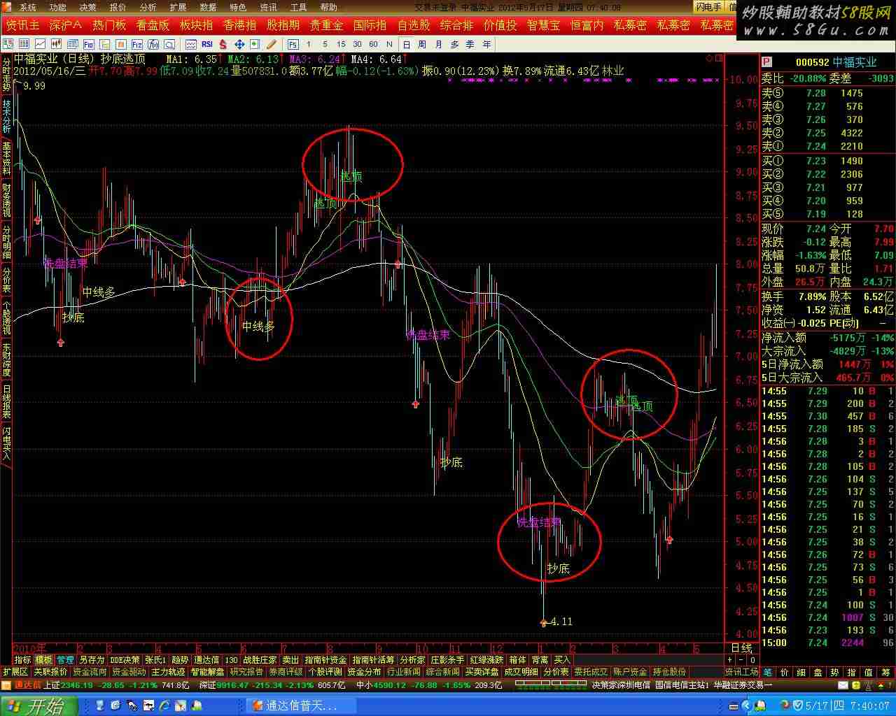 抄底逃顶JRH:=HHV(C,2); JRL:=LLV(C,2); MA6:=MA(CLOSE,3); YTSL:=(3*CLOSE+LOW+OPEN+HIGH)/6; AK1:=EMA((((CLOSE - LLV(LOW,21)) / (HHV(HIGH,21) -LLV(LOW,21))) * 100),5); AK:=EMA((((CLOSE -LLV(LOW,21)) / (HHV(HIGH,21) -LLV(LOW,21))) * 50),13); VAR5:=EMA((((CLOSE -LLV(LOW,55)) / (HHV(HIGH,34)-LLV(LOW,55))) * 100),3); VAR8:=EMA(((AK + VAR5) / 2),5); BB:=EMA(((0.667*REF(EMA(((AK + VAR5)/2),5),1))+(0.333*EMA(((AK+VAR5) / 2),5))),2); BB1:=(CROSS(AK1,BB) AND (BB < 30)); CD:=(BB1 * 0.6); DRAWICON(CD=0.6,L,1); EMA18:=MA(C,18); 中线【买入】:=COUNT(CLOSE<EMA18,5)=4 AND CLOSE/EMA18>1.004 AND CROSS(CLOSE,EMA18) AND EMA18>= REF(EMA18,1),COLORRED; DRAWTEXT(中线【买入】,L,'中线多'),COLORYELLOW; VAR12:=(SMA(ABS(LOW-REF(LOW,1)),13,1))/(SMA(MAX(LOW-REF(LOW,1),0),13,1))*100; VAR18:=EMA(IF(LOW<=LLV(LOW,34),MA(VAR12,13),0),3); VAR110:=SMA(SMA((CLOSE-LLV(LOW,54))/(HHV(HIGH,54)-LLV(LOW,54))*100,7,1),5,1); VAR111:=SMA((CLOSE-LLV(LOW,54))/(HHV(HIGH,54)-LLV(LOW,54))*100,7,1)*16.18-VAR110*10.9; T:=FILTER(IF(VAR111<=VAR110 AND VAR18>REF(VAR18,1),VAR18*8,0),20); DRAWTEXT(T,LOW,'洗盘结束'),COLORFF00FF; VAR21:=(CLOSE-LLV(LOW,36))/(HHV(HIGH,36)-LLV(LOW,36))*100; VAR22:=SMA(VAR21,3,1); VAR23:=SMA(VAR22,3,1); VAR25:=CROSS(SMA(VAR22,3,1),SMA(VAR23,3,1)) AND SMA(VAR22,3,1)<20; DRAWTEXT(FILTER(VAR25,10)=1,LOW,'抄底'),COLORYELLOW; VAR29:=CROSS(SMA(VAR23,3,1),VAR23) AND VAR23>80; DRAWTEXT(FILTER(VAR29,5)=1,HIGH,'逃顶'),COLORGREEN; MA1:EMA(C,30),COLORYELLOW; MA2:EMA(C,60),COLOR00FF00; MA3:EMA(C,120),COLORF00FF0; MA4:EMA(C,240),COLORWHITE;趋势判断主力:=EMA(((2*C+H+L)/4-LLV(L,34))/(HHV(H,34)-LLV(L,34))*100,13){*VAR2},COLORRED; 散户:=EMA(0.667*REF(主力,1)+0.333*主力,2),COLORFF9933; 上扬:IF(CROSS(主力,30) AND 散户<主力,L,DRAWNULL),POINTDOT,LINETHICK7,COLORLIMAGENTA; {35,STICK,LINETHICK2,COLOR000000; 强弱分界线:=50, POINTDOT, LINETHICK2, COLORFFFF00;} 买入脉冲:IF(CROSS(主力,散户) AND 主力<35,L*0.99,DRAWNULL),POINTDOT,LINETHICK7,COLORLIBLUE; VAR1:=(CLOSE-LLV(LOW,30))/(HHV(HIGH,30)-LLV(LOW,30))*100; 操盘线:=SMA(VAR1,5,1),LINETHICK2,COLORRED; 趋势线:=SMA(操盘线,3,1),LINETHICK2,COLORYELLOW; 买入航标:IF(CROSS(操盘线,趋势线) AND 趋势线<25,L*0.98,DRAWNULL),POINTDOT,LINETHICK5,COLORRED; 卖出脉冲:IF(CROSS(散户,主力) AND 散户>75,H*1.03,DRAWNULL),CROSSDOT,LINETHICK3,COLORGRAY;DRAWTEXT(CROSS(主力,散户) AND 主力<22,L,'起动'),COLORYELLOW; DRAWTEXT(CROSS(主力,30) AND 散户<主力,L,'上扬 '),COLOR00CCFF; DRAWTEXT(CROSS(主力,65) AND 散户<主力,H,'冲顶 '),COLOR9933FF; DRAWTEXT(CROSS(主力,75) AND 散户<主力,H,'小心被套'),COLORRED; DRAWTEXT(CROSS(散户,主力) AND 散户>75,H,'头部'), COLORYELLOW; DRAWTEXT(买入航标>0,L,'买入'),COLORRED; DRAWTEXT(CROSS(趋势线,操盘线)AND 操盘线>70,H*1.02,'卖出'),COLOR00FF00;雨后彩虹N1 1 .20 .5 N2 1 .10 .3 SW1: DMA(EMA(CLOSE,N1),SUM(VOL,N1)/N2/CAPITAL); SW2: DMA(EMA(CLOSE,2*N1),SUM(VOL,2*N1)/N2/2/CAPITAL); SW3: DMA(EMA(CLOSE,4*N1),SUM(VOL,4*N1)/N2/4/CAPITAL); SW4: DMA(EMA(CLOSE,6*N1),SUM(VOL,6*N1)/N2/6/CAPITAL); SW5: DMA(EMA(CLOSE,8*N1),SUM(VOL,8*N1)/N2/8/CAPITAL); SW6: DMA(EMA(CLOSE,10*N1),SUM(VOL,10*N1)/N2/10/CAPITAL); VAR26:=(CLOSE-LLV(LOW,21))/(HHV(HIGH,21)-LLV(LOW,21))*100; VAR27:=REVERSE(VAR26); VAR28:=SMA(VAR26,3,1); 波段王:= SMA(VAR28,3,1); 波段鬼:= SMA(波段王,8,1); 地狱:DRAWICON(CROSS(波段王,波段鬼) AND 波段王<40,LOW,1); 天堂: DRAWICON(CROSS(波段鬼,波段王) AND 波段鬼>75,HIGH,2); DRAWTEXT(CROSS(波段王,波段鬼) AND 波段王<40,LOW*1.01,'低吸做波段'), COLORWHITE; DRAWTEXT(CROSS(波段鬼,波段王) AND 波段鬼>75,HIGH*1.01,'减磅是老师'),COLOR00FF00; LC:=REF(CLOSE,1); RSI:=((SMA(MAX((CLOSE - LC),0),3,1) / SMA(ABS((CLOSE - LC)),3,1)) * 100); FF:=EMA(CLOSE,3); MA15:=EMA(CLOSE,21); DRAWTEXT(CROSS(FF,MA15),(LOW * 0.99),'上拐点'),COLORRED; DRAWTEXT(CROSS(MA15,FF),(HIGH * 1.02),'下拐点'),COLOR00FF00;庄影主图MA5:MA(CLOSE,0); 短趋势:MA(CLOSE,0),COLORRED,LINETHICK2; MA20:MA(CLOSE,0); MA30:MA(CLOSE,0); MA60:MA(CLOSE,0); MA120:MA(CLOSE,0); MA250:MA(CLOSE,0); AA10:=MA(CLOSE,0); AA12:=MA(CLOSE,0); BB10:=((ATAN((AA10 - REF(AA10,1))) * 3.1416) * 10); VAR01:=((((OPEN + LOW) + HIGH) + CLOSE) / 4); 中期大底:=LLV(LOW,30),COLORCDFFBB; 短底:=EMA(VAR01,5); 支撑:=HHV(短底,60); 压力1:=HHV(LOW,20),COLORFAABEC; 中线:=MA(CLOSE,3); 天:=(MA(LOW,15) * 0.985); 人:=(MA(LOW,15) * 0.96); 地:=(((HIGH + LOW) + CLOSE) / 3); B1:=HHV(地,(4 * 15)); B6:=LLV(地,(4 * 15)); B7:=(B1 - B6); B8:=(MA(((地 - B6) / B7),2) * 80); VAR1:=(((CLOSE - LLV(LOW,100)) / (HHV(HIGH,100) - LLV(LOW,100))) * 200); 飞龙顶底线1:=SMA(VAR1,3,1); VAR2:=SMA(飞龙顶底线1,3,1); VAR3:=((3 * 飞龙顶底线1) - (2 * VAR2)); VAR4:=LLV(LOW,5); VAR5:=HHV(HIGH,5); VAR6:=(EMA((((CLOSE - VAR4) / (VAR5 - VAR4)) * 100),4) * 2); VAR7:=EMA(((0.667 * REF(VAR6,1)) + (0.333 * VAR6)),2); VAR8:=((3 * VAR6) - (2 * VAR7)); VAR9:=(POW(MA(CLOSE,5),2) + MA(CLOSE,5)); VARA:=(POW(MA(LOW,5),2) + MA(LOW,5)); VARB:=(POW(MA(HIGH,5),2) + MA(HIGH,5)); VARC:=(((((VAR9 - LLV(VARA,64)) / (HHV(VARB,64) - LLV(VARA,64))) * 150) + 65) - 10); VARD:=((SMA(VARC,3,1) * 1.5) - 100); VARE:=SMA(VARD,3,1); VARF:=((3 * VARD) - (2 * VARE)); VAR10:=(((HIGH + LOW) + (CLOSE * 2)) / 4); VAR11:=EMA(VAR10,13); VAR12:=STD(VAR10,13); VAR13:=(((VAR10 - VAR11) * 100) / VAR12); VAR14:=EMA(VAR13,5); VAR15:=EMA(VAR14,13); VAR16:=((EMA(VAR14,13) + 200) - 100); VAR17:=EMA(VAR16,10); VAR18:=((3 * VAR16) - (2 * VAR17)); VAR19:=(((飞龙顶底线1 + VAR6) + VARD) + VAR16); VAR1A:=(((VAR2 + VAR7) + VARE) + VAR17); VAR1B:=(((VAR3 + VAR8) + VARF) + VAR18); VAR1C:=(((HIGH + LOW) + CLOSE) / 3); VAR1D:=((AMOUNT / VOL) / 100); VAR1E:=((SUM(AMOUNT,5) / SUM(VOL,5)) / 100); VAR1F:=((VAR1C - MA(VAR1C,34)) / (0.015 * AVEDEV(VAR1C,34))); VAR21:=((((HIGH + LOW) + CLOSE) + VAR1C) / 4); VAR22:=EMA(VAR21,24); VAR23:=STD(VAR21,24); VAR24:=(((VAR21 - VAR22) / VAR23) * 100); VAR25:=((VAR1C - MA(VAR1C,24)) / (0.015 * AVEDEV(VAR1C,24))); VAR26:=