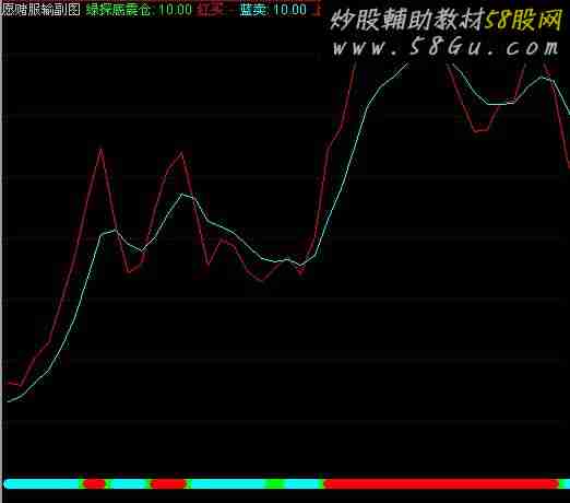 VAR1:=(CLOSE+HIGH+LOW)/3; VAR2:=EMA(VAR1,10); VAR3:=REF(VAR2,1); 绿探底震仓:IF(VAR2,10,DRAWNULL),COLORGREEN,LINETHICK9; 红买: IF(VAR2>VAR3,10,DRAWNULL), COLORRED,LINETHICK9; 蓝卖: IF(VAR2<VAR3,10,DRAWNULL),COLORFFFF00,LINETHICK9; RSV:=(CLOSE-LLV(LOW,9))/(HHV(HIGH,9)-LLV(LOW,9))*100; 上穿买:SMA(RSV,3,1),COLORRED; 下穿卖:SMA(上穿买,3,1),COLORFFFF00; |