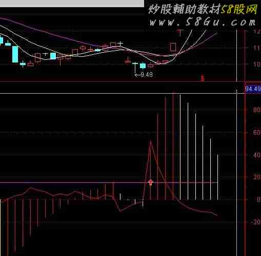 DIF1:=EMA(DCLOSE,12)-EMA(DCLOSE,26); DEA1:=EMA(DIF1,9); {柱状线} AAA1:=(DIF1-DEA1)*2*60; AAA上:IF(AAA1>REF(AAA1,1),AAA1,DRAWNULL), STICK,COLORRED,LINETHICK1; AAA下:IF(AAA1<REF(AAA1,1),AAA1,DRAWNULL),STICK,COLORYELLOW,LINETHICK1; 买入线:15; 房子:AAA1-REF(AAA1,1),COLORRED; DRAWICON(CROSS(房子,买入线),买入线,1); |