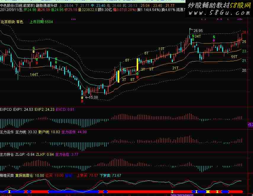 CC:=ABS((2*CLOSE+HIGH+LOW)/4-MA(CLOSE,20))/MA(CLOSE,20); DD:=DMA(CLOSE,CC); 上:(1+7/100)*DD,COLORGRAY; 下:(1-7/100)*DD,COLORGRAY; 中:(上+下)/2,COLORF0F000; 危:(1+14/100)*DD,DOTLINE,COLORGRAY; 机:(1-14/100)*DD,DOTLINE,COLORGRAY; IF(上>=REF(上,1), 上,DRAWNULL),COLOR0099FF; IF(中>=REF(中,1), 中,DRAWNULL),COLOR0099FF; IF(下>=REF(下,1), 下,DRAWNULL),COLOR0099FF; DRAWNUMBER(ISLASTBAR,上,上),COLOR00FFFF; DRAWNUMBER(ISLASTBAR,下,下),COLORFFFF00; DRAWNUMBER(ISLASTBAR,中,中),COLOR00FF00; DRAWNUMBER(ISLASTBAR,危,危),COLOR0000FF; DRAWNUMBER(ISLASTBAR,机,机),COLORWHITE; {财务数据} DRAWTEXT_FIX(ISLASTBAR,0.18,0.01,1,'上市日期:'),COLOR00FF00; DRAWNUMBER_FIX(ISLASTBAR,0.18,0.01,0,FINANCE(42)),COLOR00FF00; DRAWTEXT_FIX(1,0.01,0.13,0,EXTERNSTR(0,1)),COLORRED; DRAWTEXT_FIX(1,0.26,0.01,0,EXTERNSTR(0,2)),COLORDD00DD; DRAWTEXT_FIX(1,0.01,0.066,0,EXTERNSTR(0,3)),COLOR00DD00; DRAWTEXT_FIX(ISLASTBAR ,0.06,0.01,1,DYBLOCK),COLORYELLOW; DRAWTEXT_FIX(ISLASTBAR ,0.065,0.01,0,HYBLOCK),COLORYELLOW; {涨停标注} STICKLINE(C/REF(C,1)>1.095,C,O,2,0),COLORYELLOW; {涨停天数} VARZT:=BARSLAST(C/REF(C,1)>1.094); DRAWTEXT(VARZT=2,L*0.95,'3T'),COLORYELLOW; DRAWTEXT(VARZT=4,H*1.06,'5T'),COLORYELLOW; DRAWTEXT(VARZT=7,L*0.95,'8T'),COLORYELLOW; DRAWTEXT(VARZT=12,H*1.06,'13T'),COLORYELLOW; DRAWTEXT(VARZT=20,L*0.95,'21T'),COLORYELLOW; DRAWTEXT(VARZT=33,H*1.06,'34T'),COLORYELLOW; DRAWTEXT(VARZT=54,L*0.95,'55T'),COLORYELLOW; DRAWTEXT(VARZT=88,H*1.06,'89T'),COLORYELLOW; DRAWTEXT(VARZT=143,L*0.95,'144T'),COLORYELLOW; DRAWTEXT(VARZT=232,H*1.06,'233T'),COLORYELLOW; DRAWTEXT(VARZT=376,L*0.95,'377T'),COLORYELLOW;