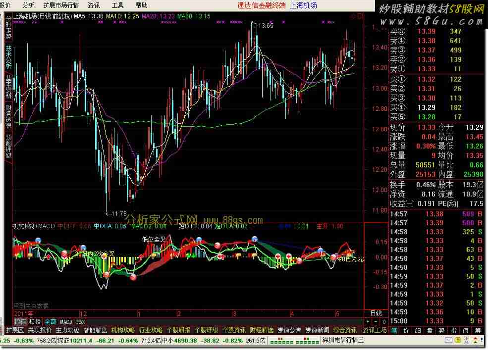 机构K线+MACD经典指标 中DIFF:(EMA(CLOSE,12) - EMA(CLOSE,26)),LINETHICK2,COLOR2A2AA5; 中DEA:EMA(中DIFF,9),COLORFFFF00; DRAWBAND(中DIFF,RGB(155,50,50),中DEA,RGB(0,100,50)); MACD2:(2 * (中DIFF -中DEA)),LINETHICK0,COLORFFFF00; STICKLINE((MACD2>=0),0,MACD2,1,0),COLORRED; STICKLINE(((MACD2>=0) AND (MACD2 < REF(MACD2,1))),0,MACD2,1,1),COLORLIBLUE; STICKLINE((MACD2<0),0,MACD2,1,1),COLORGREEN; STICKLINE(((MACD2<0) AND (MACD2 > REF(MACD2,1))),0,MACD2,1,0),COLORYELLOW; DU0:=CROSS(中DIFF,0); UD0:=CROSS(0,中DIFF); TDU0:=BARSLAST(DU0); TUD0:=BARSLAST(UD0);DU3:=REF(DU0,1); UD3:=REF(UD0,1); TDU3:=BARSLAST(DU3); TUD3:=BARSLAST(UD3);UDGLINE:=IF((TDU3 < TUD3),REF(HHV(HIGH,2),TDU3),REF(LLV(LOW,2),TUD3));JDU0:=(((REF(CLOSE,1) <= REF(UDGLINE,1)) AND (CLOSE > UDGLINE)) AND (TDU0 < TUD0)); JUD0:=(((REF(CLOSE,1) >= REF(UDGLINE,1)) AND (CLOSE < UDGLINE)) AND (TUD0 < TDU0)); JDU1:=(JDU0 AND (COUNT(JDU0,TDU0) = 1)); JUD1:=(JUD0 AND (COUNT(JUD0,TUD0) = 1)); JDU2:=(JDU1 AND (REF(BARSLAST(JUD1),1) < REF(BARSLAST(JDU1),1))); JUD2:=(JUD1 AND (REF(BARSLAST(JUD1),1) > REF(BARSLAST(JDU1),1))); JDU3:=(JDU1 AND (REF(BARSLAST(JUD1),1) > REF(BARSLAST(JDU1),1))); JUD3:=(JUD1 AND (REF(BARSLAST(JUD1),1) < REF(BARSLAST(JDU1),1))); BSLINE:=IF((BARSLAST(JDU2) < BARSLAST(JUD2)),IF(REF(CROSS(0,MACD2),1),LLV(LOW,2),REF(LLV(LOW,2),BARSLAST(REF(CROSS(0,MACD2),1)))),IF(REF(CROSS(MACD2,0),1),HHV(HIGH,2),REF(HHV(HIGH,2),BARSLAST(REF(CROSS(MACD2,0),1)))));DEFUT:=BARSLAST(CROSS(MACD2,0)); DEFDT:=BARSLAST(CROSS(0,MACD2)); DEFUL:=IF((MACD2 >= 0),HHV(MACD2,(DEFUT + 1)),REF(HHV(MACD2,(DEFUT + 1)),(DEFDT + 1))); DEFDL:=IF((MACD2 < 0),LLV(MACD2,(DEFDT + 1)),REF(LLV(MACD2,(DEFDT + 1)),(DEFUT + 1))); DEFU2L:=REF(DEFUL,(DEFUT + 1)); DEFD2L:=REF(DEFDL,(DEFDT + 1));短DIFF:(EMA(C,3)-EMA(C,10)),LINETHICK2,COLORC0C0C0; 短DEA:EMA(短DIFF,9),LINETHICK2,COLOR33FF33; IF(短DIFF>=短DEA,短DIFF,DRAWNULL),COLORRED,LINETHICK2;D1:=EMA(C,3)-EMA(C,8); D2:=EMA(O,3)-EMA(O,8); D3:=EMA(H,3)-EMA(H,8); D4:=EMA(L,3)-EMA(L,8); DRAWICON(((((LLV(MACD2,4) > 0) AND (MACD2 < REF(MACD2,1))) AND (REF(MACD2,1) > REF(MACD2,2))) AND (REF(MACD2,2) > REF(MACD2,3))),0,12); DRAWICON(((((HHV(MACD2,4) < 0) AND (MACD2 > REF(MACD2,1))) AND (REF(MACD2,1) < REF(MACD2,2))) AND (REF(MACD2,2) < REF(MACD2,3))),0,23); DRAWICON(CROSS(中DIFF,D1) AND 中DIFF>0.1 ,0,2); EE:=CROSS(中DIFF,中DEA) AND MACD2>REF(MACD2,1) AND 短DIFF>=REF(短DIFF,1) AND 中DEA>=REF(中DEA,1); 出:=FILTER(EE,10); DRAWICON(出,0,1);低位金叉:= CROSS(中DIFF,中DEA) AND 中DIFF<(-0.1); DRAWTEXT(低位金叉,0.21,' 低位金叉'),COLORWHITE;A:=CROSS(中DIFF,中DEA); 两次金叉:=CROSS(中DIFF,中DEA)AND COUNT(A,20)=2 AND MACD>REF(MACD,1); DRAWTEXT(两次金叉,中DIFF,'20日内2次金叉'),COLORYELLOW;JCCOUNT:=COUNT(CROSS(中DIFF,中DEA),BARSLAST(中DEA>=0)); 低位二次金叉:=CROSS(中DIFF,中DEA) AND 中DEA<0 AND COUNT(JCCOUNT=2,21)=1; DRAWTEXT(低位二次金叉,0.25,'低位二次金叉'),COLORYELLOW;OBV:=中DIFF; P:=5; A1:=REF(OBV,P)=HHV(OBV,2*P+1); B1:=FILTER(A1,P); C1:=BACKSET(B1,P+1); D11:=FILTER(C1,P);{高点} A2:=REF(OBV,P)=LLV(OBV,2*P+1); B2:=FILTER(A2,P); C2:=BACKSET(B2,P+1); D22:=FILTER(C2,P);{低点} R11:=BACKSET(ISLASTBAR,BARSLAST(D11)+1); S11:=R11>REF(R11,1); DRAWLINE(D11,OBV,S11,OBV,1),COLORBLUE; T11:=BACKSET(ISLASTBAR,BARSLAST(D22)+1); U11:=T11>REF(T11,1); DRAWLINE(D22,OBV,U11,OBV,1),COLOR00FF00; DRAWICON(D11,OBV,14); DRAWICON(D22,OBV,13);主升 : 中DIFF>0 AND 中DIFF>中DEA,COLOR0000FF,POINTDOT,NODRAW; STICKLINE(主升,中DIFF,中DEA,0.5,0),COLOR0000FF;VAR2:=REF(LOW,1); VAR3:=SMA(ABS(LOW-VAR2),3,1)/SMA(MAX(LOW-VAR2,0),3,1)*100; VAR4:=EMA(IF(CLOSE*1.3,VAR3*10,VAR3/10),3); VAR5:=LLV(LOW,13); VAR6:=HHV(VAR4,13); VAR7:=IF(MA(CLOSE,34),1,0); VAR8:=EMA(IF(LOW<=VAR5,(VAR4+VAR6*2)/2,0),3)/618*VAR7; VAR9:=IF(VAR8>100,100,VAR8); VAR10:=IF(VAR9>-120,VAR9,0); VAR11:=VAR10<REF(VAR10,1); DRAWTEXT(VAR11 AND REF(NOT(VAR11),1),-0.5,'★'),COLORBLUE; |