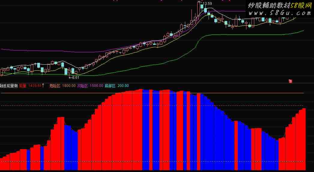 VAR2:=(CLOSE-LLV(LOW,24))/(HHV(HIGH,24)-LLV(LOW,24))*200*10; 能量: SMA(VAR2,5,1),COLORRED; {颜色自己可以修改} STICKLINE(能量>REF(能量,1),0,能量,3.0,0),COLORRED; STICKLINE(能量<REF(能量,1),0,能量,3.0,0),COLORBLUE; 危险区:1800,COLOR208FFF; 次险区:1500,COLORFF33FF,DOTLINE; VAR3:=VOL/((HIGH-LOW)*2-ABS(CLOSE-OPEN)); VAR4:=(IF(CLOSE>OPEN,VAR3*(HIGH-LOW),IF(CLOSE<OPEN,VAR3*(HIGH-OPEN+CLOSE-LOW),VOL/2))/(IF(CLOSE>OPEN,0-VAR3*(HIGH-CLOSE+OPEN-LOW),IF(CLOSE<OPEN,0-VAR3*(HIGH-LOW),0-VOL/2))*(-1))-IF(CLOSE>OPEN,0-VAR3*(HIGH-CLOSE+OPEN-LOW),IF(CLOSE<OPEN,0-VAR3*(HIGH-LOW),0-VOL/2))*(-1)/IF(CLOSE>OPEN,VAR3*(HIGH-LOW),IF(CLOSE<OPEN,VAR3*(HIGH-OPEN+CLOSE-LOW),VOL/2))); VAR5:=AMOUNT/(100*VOL); VAR6:=MA(VAR5,40); VAR7:=100*(CLOSE-VAR6)/VAR6; 底部区: IF(VAR4>0 AND VAR7<-12 AND CLOSE/OPEN>1.07,300,200),COLORFFFF00,DOTLINE; |