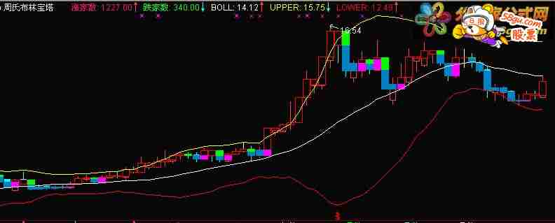 VAR1:=CLOSE>REF(CLOSE,1) AND CLOSE>REF(CLOSE,2); VAR2:=REF(VAR1,1) AND CLOSE<=REF(CLOSE,1) AND CLOSE>=REF(CLOSE,2); VAR3:=REF(VAR2,1) AND CLOSE>=REF(CLOSE,1) AND CLOSE<=REF(CLOSE,2); VAR4:=REF(VAR3,1) AND CLOSE<=REF(CLOSE,1) AND CLOSE>=REF(CLOSE,2); VAR5:=REF(VAR4,1) AND CLOSE>=REF(CLOSE,1) AND CLOSE<=REF(CLOSE,2); VAR6:=REF(VAR5,1) AND CLOSE<=REF(CLOSE,1) AND CLOSE>=REF(CLOSE,2); VAR7:=REF(VAR6,1) AND CLOSE>=REF(CLOSE,1) AND CLOSE<=REF(CLOSE,2); VAR8:=REF(VAR7,1) AND CLOSE<=REF(CLOSE,1) AND CLOSE>=REF(CLOSE,2); VAR9:=REF(VAR8,1) AND CLOSE>=REF(CLOSE,1) AND CLOSE<=REF(CLOSE,2); VARA:=REF(VAR9,1) AND CLOSE<=REF(CLOSE,1) AND CLOSE>=REF(CLOSE,2); VARB:=REF(VARA,1) AND CLOSE>=REF(CLOSE,1) AND CLOSE<=REF(CLOSE,2); VARC:=REF(VARB,1) AND CLOSE<=REF(CLOSE,1) AND CLOSE>=REF(CLOSE,2); STICKLINE(VAR1 OR VAR2 OR VAR3 OR VAR4 OR VAR5 OR VAR6 OR VAR7 OR VAR8 OR VAR9 OR VARA OR VARB OR VARC,CLOSE,REF(CLOSE,1),3,1),COLOR0000FF; VARD:=CLOSE<REF(CLOSE,1) AND CLOSE<REF(CLOSE,2); VARE:=REF(VARD,1) AND CLOSE>=REF(CLOSE,1) AND CLOSE<=REF(CLOSE,2); VARF:=REF(VARE,1) AND CLOSE<=REF(CLOSE,1) AND CLOSE>=REF(CLOSE,2); VAR10:=REF(VARF,1) AND CLOSE>=REF(CLOSE,1) AND CLOSE<=REF(CLOSE,2); VAR11:=REF(VAR10,1) AND CLOSE<=REF(CLOSE,1) AND CLOSE>=REF(CLOSE,2); VAR12:=REF(VAR11,1) AND CLOSE>=REF(CLOSE,1) AND CLOSE<=REF(CLOSE,2); VAR13:=REF(VAR12,1) AND CLOSE<=REF(CLOSE,1) AND CLOSE>=REF(CLOSE,2); VAR14:=REF(VAR13,1) AND CLOSE>=REF(CLOSE,1) AND CLOSE<=REF(CLOSE,2); VAR15:=REF(VAR14,1) AND CLOSE<=REF(CLOSE,1) AND CLOSE>=REF(CLOSE,2); VAR16:=REF(VAR15,1) AND CLOSE>=REF(CLOSE,1) AND CLOSE<=REF(CLOSE,2); VAR17:=REF(VAR16,1) AND CLOSE<=REF(CLOSE,1) AND CLOSE>=REF(CLOSE,2); VAR18:=REF(VAR17,1) AND CLOSE>=REF(CLOSE,1) AND CLOSE<=REF(CLOSE,2); STICKLINE(VARD OR VARE OR VARF OR VAR10 OR VAR11 OR VAR12 OR VAR13 OR VAR14 OR VAR15 OR VAR16 OR VAR17 OR VAR18,CLOSE,REF(CLOSE,1),3,0),COLORC08000; VAR19:=REF(VARD OR VARE OR VARF OR VAR10 OR VAR11 OR VAR12 OR VAR13 OR VAR14 OR VAR15 OR VAR16 OR VAR17 OR VAR18,1) AND VAR1; STICKLINE(VAR19,REF(CLOSE,1),REF(CLOSE,2),3,0),COLORFF00FF; VAR1A:=REF(VAR1 OR VAR2 OR VAR3 OR VAR4 OR VAR5 OR VAR6 OR VAR7 OR VAR8 OR VAR9 OR VARA OR VARB OR VARC,1) AND VARD; STICKLINE(VAR1A,REF(CLOSE,1),REF(CLOSE,2),3,0) ,COLOR00FF00; 涨家数:INDEXADV,NODRAW,COLORLIMAGENTA ; 跌家数:INDEXDEC,NODRAW,COLORGREEN; BOLL:MA(CLOSE,20),COLORWHITE; UPPER:BOLL+2*STD(CLOSE,20),COLORYELLOW; LOWER:BOLL-2*STD(CLOSE,20),COLORRED;
