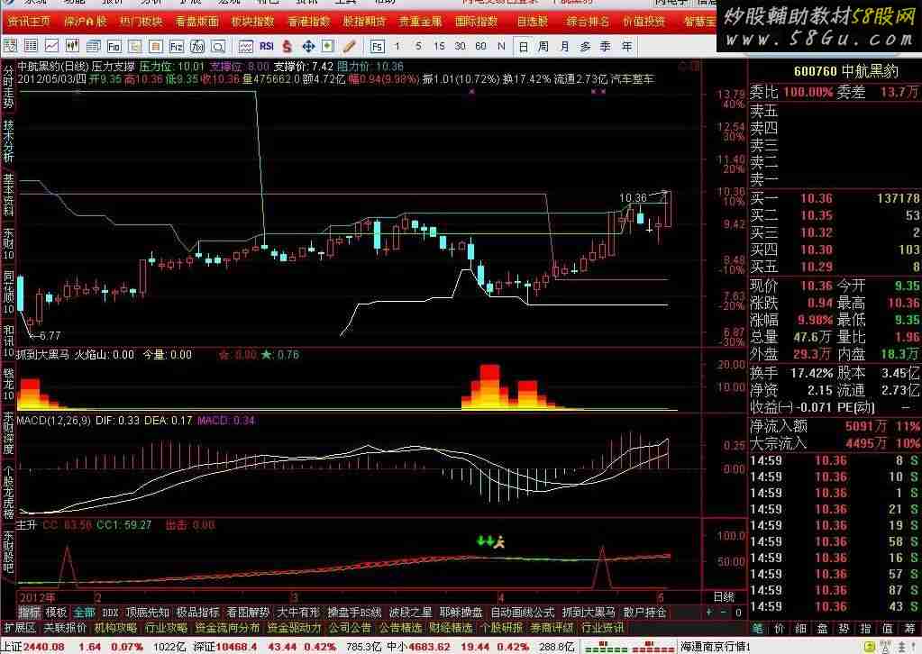RSV:=(CLOSE-LLV(LOW,13))/(HHV(HIGH,13)-LLV(LOW,13))*100; K:=SMA(RSV,3,1); D:=SMA(K,3,1); J:=3*K-2*D; RSV24:=(CLOSE-LLV(LOW,55))/(HHV(HIGH,55)-LLV(LOW,55))*100; K24:=SMA(RSV24,3,1); D24:=SMA(K24,3,1); J24:=3*K24-2*D24; 压力位:IF(CROSS(J24,J),H,REF(H,BARSLAST(CROSS(J24,J)))),COLOR00FF33,LINETHICK1; 支撑位:IF(CROSS(J,J24),L,REF(L,BARSLAST(CROSS(J,J24)))),COLORCC33CC,LINETHICK1; 支撑价:LLV(LOW,34) ,COLOR7FFF00,COLORWHITE; 阻力价:HHV(HIGH,34),COLORFF9900,COLORLIBLUE,LINETHICK1;