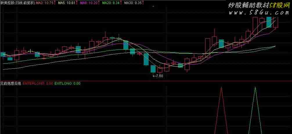红进,绿出,结合MA2均线做 望大家一起赚钱H1:=DYNAINFO(7)>5 AND DYNAINFO(7)<20;{股价取5至20元} H2:= CAPITAL/10000000<3; {流通盘3亿} 停牌:=DYNAINFO(4)=0; 前炮:=(C-REF(C,1))*100/REF(C,1)>7; 后炮:=(C-REF(C,1))*100/REF(C,1)<7; T1:=V<REF(V,BARSLAST(前炮)); 调整天数:=BARSLAST(前炮)<10; 不破前炮开盘:=LLV(C,BARSLAST(前炮))>=REF(O,BARSLAST(前炮)); 小实体:=HHV(ABS(C-REF(C,1))/REF(C,1)*100,BARSLAST(前炮))<=6; 回调:=调整天数 AND 不破前炮开盘 AND 小实体; 选股:=后炮 AND REF(回调,1) AND T1; 双响炮:=选股 AND (REF(BARSLAST(选股),1)>3 OR BARSSINCE(选股 )=0) AND H1 AND H2 AND IF(NAMELIKE('ST'),0,1) AND IF(NAMELIKE('*ST'),0,1) AND NOT(停牌); ENTERLONG:双响炮,COLORRED; A:=BARSLAST(ENTERLONG ); CC:=REF(C,A); CC10:=CC*1.1;CC05:=CC*0.95; KL:=(CROSS(C,CC10) OR CROSS(CC05,C)); PD:=COUNT(KL,A+1)>=1; PDXH:=CROSS(PD,0.5); KLL:=A=7 OR PDXH; PDSC:=COUNT(KLL,A+1)>=1; EXITLONG:CROSS(PDSC,0.5),COLORGREEN;
